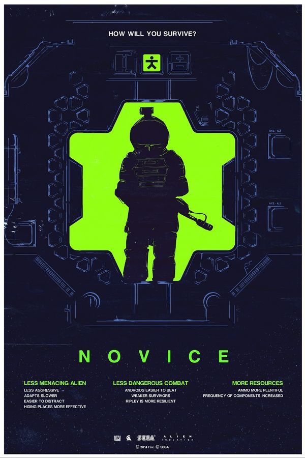 S druge strane, svi igrači koji bi htjeli bezbrižno završiti igru dobili su Novice težinu gdje je sve višestruko olakšano. Neprijatelji ovdje rade manje štete, resursa ima kao u priči, a Alien uopće nije strašan te je manje opasan.
