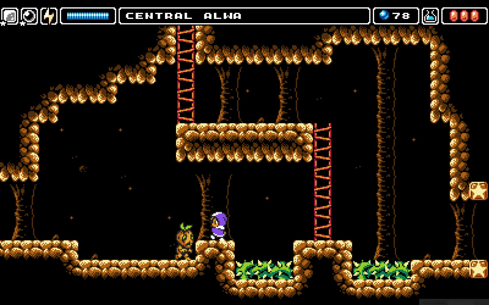 Dodatni teret na pleća istraživanja nanosi i sistem spašavanja, koji često ima mazohističke tendencije, pokušavajući stvoriti često artificijelni izazov koji stvara više frustracije nego li zadovoljštine. Igra će vas često tjerati da ponavljate jedne te iste etape, koje često prelaze i po sedam soba recimo, prije nego li dođete do checkpointa. Kad smo već kod soba, vrijedi napomenuti da je Alwa cijela strukturirana na tom principu, dakle ne postoji dinamična bočno skrolirajuća perspektiva, već se, u stilu 80-tih, nalazite u fiksiranoj poziciji kamere, a do pomicanja dolazi kada izađete iz trenutno aktivne sobe. Soba je ovdje naravno isključivo dizajnerski izraz, jer ćete veći dio vremena provesti na otvorenom kroz tematski raznovrsne lokacije. Ovo je bio zapravo dobar potez, jer unatoč mnogobrojnim problemima pojedinačnih soba, poput recimo balansa težine, one najčešće imaju kompaktan dizajn, često dobro prošaran raznim platformsko-akcionim elementima, uz kvalitetno dizajnirane zagonetke.
