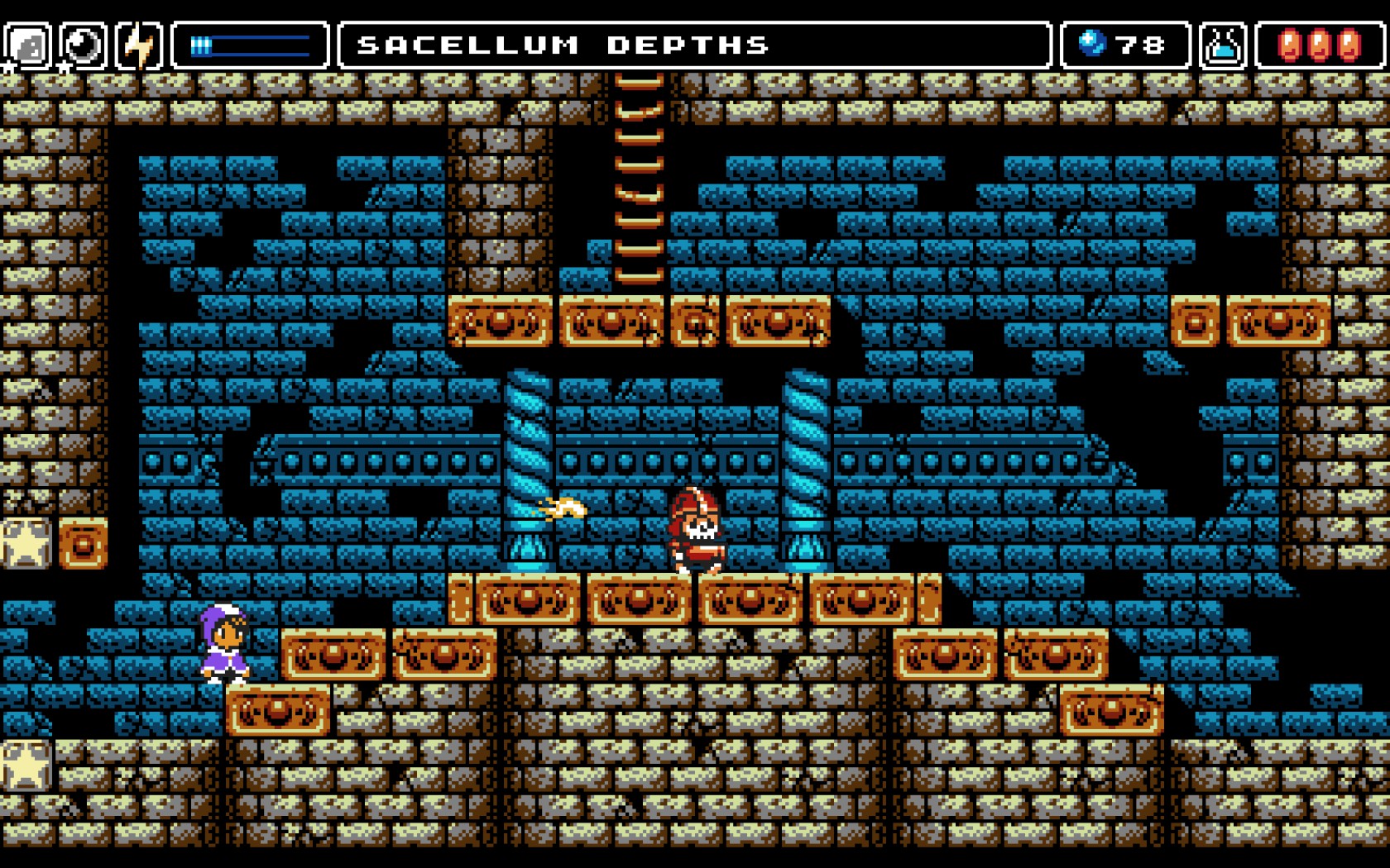 Alwa’s Awakening se ne samo po ugođaju vraća u 80-te, već i po pitanju videoigračkog dizajna. Ovo je metroidvanija koja jasno pokazuje svoje korijene u žanru platformske avanture, te za razliku od većine modernih predstavnika, platformiranje stavlja u srž svog dizajnerskog interesa. To je ujedno i aspekt u kojem je Alwa najzaokruženija. Naime, Alwa je platformer koji je dosta sporog tempa, i svoju skok mehaniku više kroji ka preciznosti nego li na ritmičnim tendencijama platformskog žanra 90-tih. To daje Alwi vrlo specifičan platformski šmek koji je uz to još i mehanički podmazan analognom skočnosti glavnog lika. Nažalost, odlična platformska osnova nije do kraja iskorištena, prije svega zahvaljujući anahronoj intenciji da se cijeli kontrolni sistem prilagodi NES gamepadu, tako da se izvršavanje magija, koje se često upotrebljavaju kao neophodna pomoć u savladavanju platformskih prepreka, prilagođava sistemu od svega tri kontrolne tipke, što u osnovi znači da ćete svaku magiju izvoditi kombinacijom direktivnog smjera i tipke, sa dodatkom da magije ne možete nelinearno mijenjati već isključivo preko jedne tipke. Ako ovome dodate spor tempo, natprosječnu težinu i kreature koje vas stalno vrebaju, onda dobivate bespotreban frustracijski lanac. Na svu sreću sama borba je dovoljno dobro dizajnirana jer ne komplicira dodatno stvari, a dovoljno je učinkovita s blažom varijacijom protivnika i raznim metodama za njihovu eliminaciju, unatoč skromnom napadačkom arsenalu koji se sastoji od udaranja štapom i jednog magičnog napada. S obranom pak stvari stoje drugačije. Iako postoji više defenzivnih taktika nego li ofenzivih, sam sistem zdravlja je dosta čudno postavljen. U samoj igri imate tri životna poena, a udarci koje dobivate ili oduzimaju jedan poen ili sva tri, što u konačnici dodatno opterećuje ionako problematičan balans težine. Dodajte tome i zalihe vode koji vam daju dodatni blok životnih poena, a pune se na bunarima koji su neravnomjerno raspoređeni i skromni loot protivnika u vidu jednog životnog poena, koji je obično beskoristan jer je proceduralno generiran.