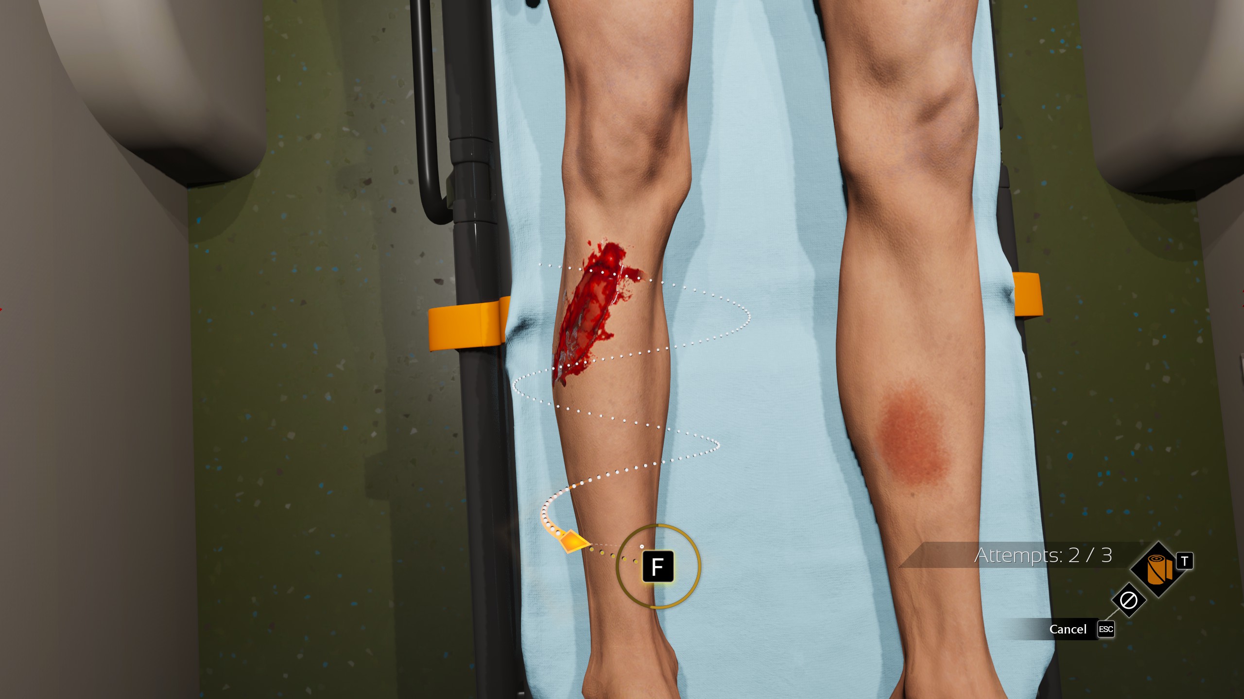 Nakon što potrošite još dvije minute da dođete s nosilima do osobe i odvedete ih do hitne, tek onda možete ući unutra. A kad uđete, proces postaje još sporiji. Prvo morate izmjeriti tlak, pa šećer u krvi, sve to dok ozlijeđena osoba može lako iskrvariti. Da bi proces bio još naporniji, postoje mini igre, primjerice, za stavljanje zavoja morate povući crtice na pravom mjestu i onda stisnuti tipku u pravo vrijeme, a ako pogriješite imate pravo tri put opet sve ponoviti. Zašto je sve toliko dvostruko usporeno i zašto svaki korak oduzima toliko vremena, jednostavno nije shvatljivo.