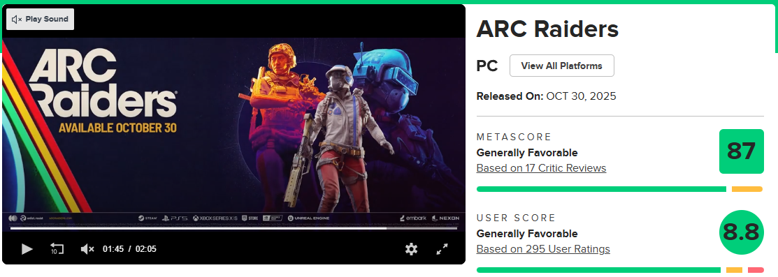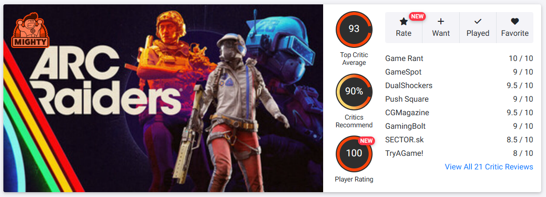 Za ekipu iz Embark Studiosa i njihov extraction shooter ARC Raiders period medenog mjeseca i općenito pozitivni vibe apsolutno ne planira tako brzo stati. Uz činjenicu da su postavili rekord za extraction shooter žanr (istovremeni broj igrača na Steamu) i sjajnu prodaju u tri dana, ovaj studio je dobio još jednu “nagradu” u obliku zbrojnih recenzija na Metacriticu.