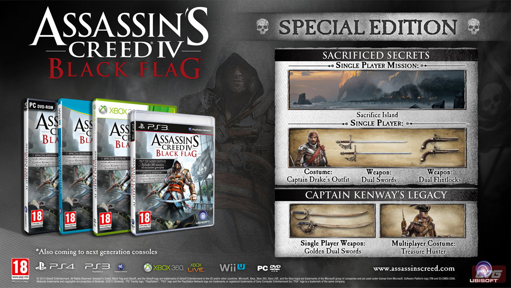 Assassin’s Creed IV: Black Flag u Sjevernoj Americi izlazi 29. listopada, a u Europu stiže 1. studenog. Za sada su potvrđene verzije za PC, Wii U, PlayStation 3, PlayStation 4 i Xbox360, mada će se igra sasvim sigurno pojaviti i na novoj Microsoftovoj konzoli.