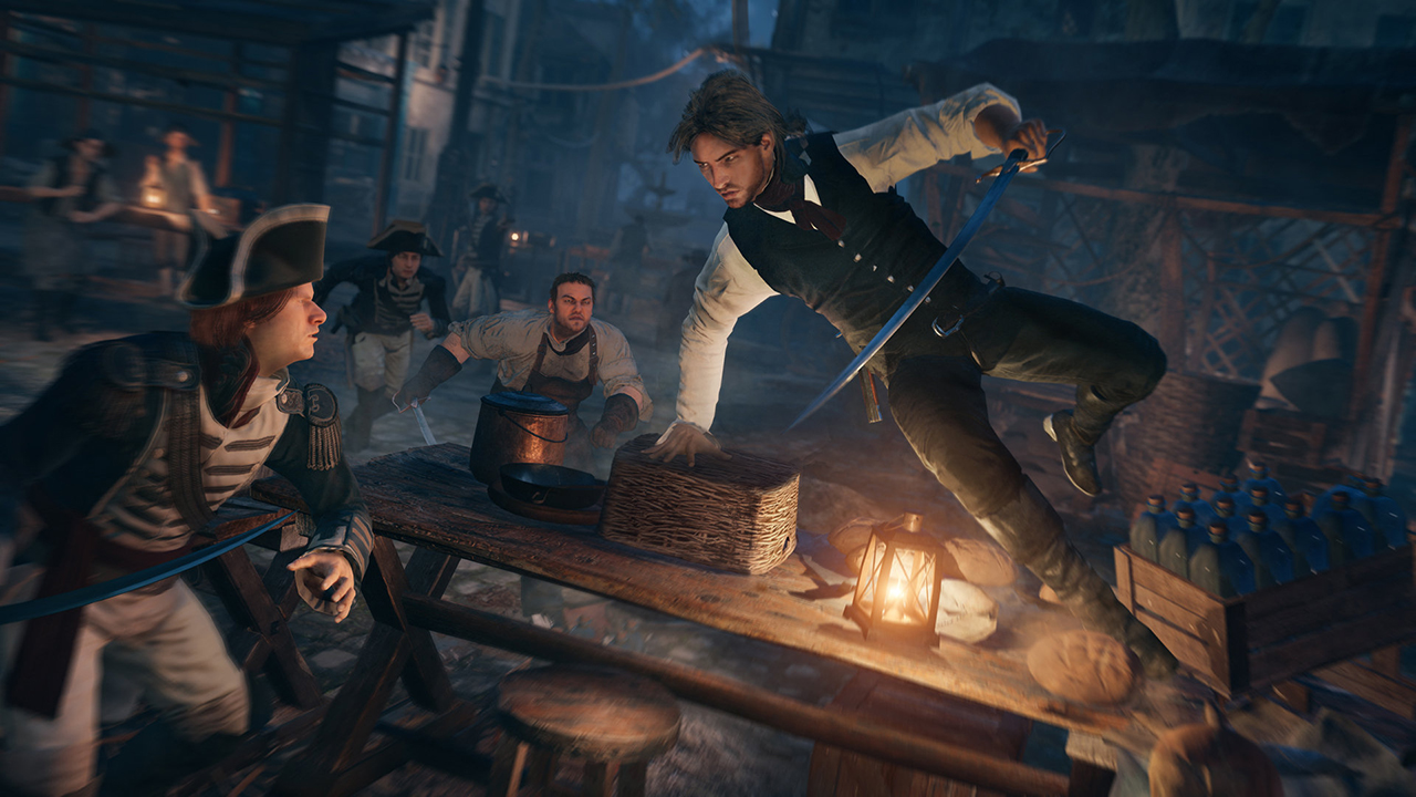 Svakako implementacija co-op igranja. Naime, iz igre je u potpunosti je uklonjena kompetitivna multiplayer komponenta (realno, ni AC: Rogue ju nije imao, a vjerujem da nikome nije ni nedostajala), a umjesto nje premijerno smo dobili priliku zaigrati igru u društvu jednog, dva ili tri prijatelja. Da, Assassin’s Creed: Unity stiže s co-op podrškom za do četiri igrača. Odmah da se razumijemo – ako očekujete full story iskustvo, identično onome iz story moda, mogli biste se razočarati. Kooperativna komponenta u ovoj igri sastoji se od pozivanja prijatelja na zajedničko igranje (to je moguće učiniti i u nekoj od brojnih krčmi razbacanih diljem Pariza) dva tipa misija – story i heist. Story misije su slične onima iz prave story kampanje, no malo ih je i dosta su osakaćene u odnosu na originalne. Heist misije donose nešto zanimljiviju gameplay mehaniku, koja uključuje šuljanje i taktiziranje prilikom obavljanja zadatih misija. Kada je u pitanju samo izvođenje ovog moda, primjetio sam da se igra ponekad crashira, no ništa strašno u usporedbi s brojnim drugim problemima, koje je ova igra imala na startu.