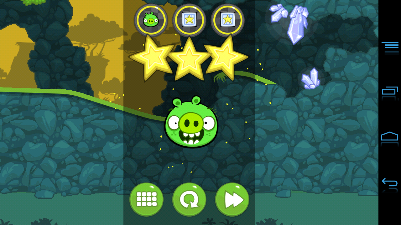 Sada, kada smo na „tamnoj strani“ u Angry Birds realmu, moramo pronaći nove načine za dolaženje do neprocjenjivih ptičjih jaja. Bad Piggies nas odvodi do jednog sasvim novog koncepta: kreiranja vozila u kojem ćemo prenijeti zelenog prasca od točke A do točke B koristeći sve raspoložive matrerijale, a da prijeđemo svaku razinu, morat ćemo se potruditi da kvalitetno sagradimo vozilo, ali i da jednako tako dobro upravljamo njime. Ovakav način kreiranja vozila ima svoje korijene u Banjo-Kazooie: Nuts & Bolts i Fantastic Contraption naslovima, gdje igračeva kreativnost dolazi do izražaja. Naravno, nećemo mi glumiti neke inžinjere u igri, s obzirom da vozilo kreiramo u 2D okružju, i to s nekoliko elemenata: točkovi, potporne kocke, baloni, usporavači ili pokretači vozila. Nemojte pomisliti da je to malo, s obzirom da svaki element ima jedan solidan broj svojih podelemenata (npr. točkovi se dijele na drvene, male metalne i velike metalne), dok je najveći broj varijacija u onima koji pokreću naše vozilo. Od jednostavnog raspirivača vatre do velikog motora, uglavnom ćemo u kasnijim dijelovima igre koristiti više različitih sredstava kako bismo došli do cilja. Sve ovo dolazi u paketu sa zanimljivim vožnjama po šarolikom dvodimenzionalnom svijetu AB serijala koje su, ruku na srce, mnogo zabavnije kada pogriješite u svojim kalkulacijama, nego kada isprve sve riješite. Kada napravite nešto nestabilno, vozilo će proizvoditi čudne zvukove, a zelenkasti praščić će početi praviti grimase, što će vam definitivno izmamiti smješak na usta. Ono što je jedinstveno za ovu igru je izuzetno mala razlika između uspjeha i neuspjeha. Ako samo sekundu ranije upalite rakete prije idealnog vremena, morat ćete sve to ponovno raditi. Sukladno tome, Bad Piggies i nije napravljena kao „noob-friendly“ igra poput Angry Birdsa i sigurno će neki od igrača biti izuzetno frustrirani tijekom igranja ove igre.