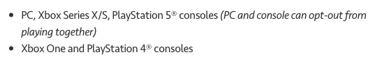 Kroz FAQ sekciju Battlefielda 2042, potvrđeno je da će verzije za PlayStation 4 i Xbox One imati omogućen crossplay između sebe, ostavljajući ih izvan dosega drugih platformi. Također, treba imati na umu da će last-gen verzije igre imati snažna tehnička ograničenja, kao što su manje mape, manji lobiji i manji sustav uništavanja nego što ćemo ih vidjeti na novom hardveru.