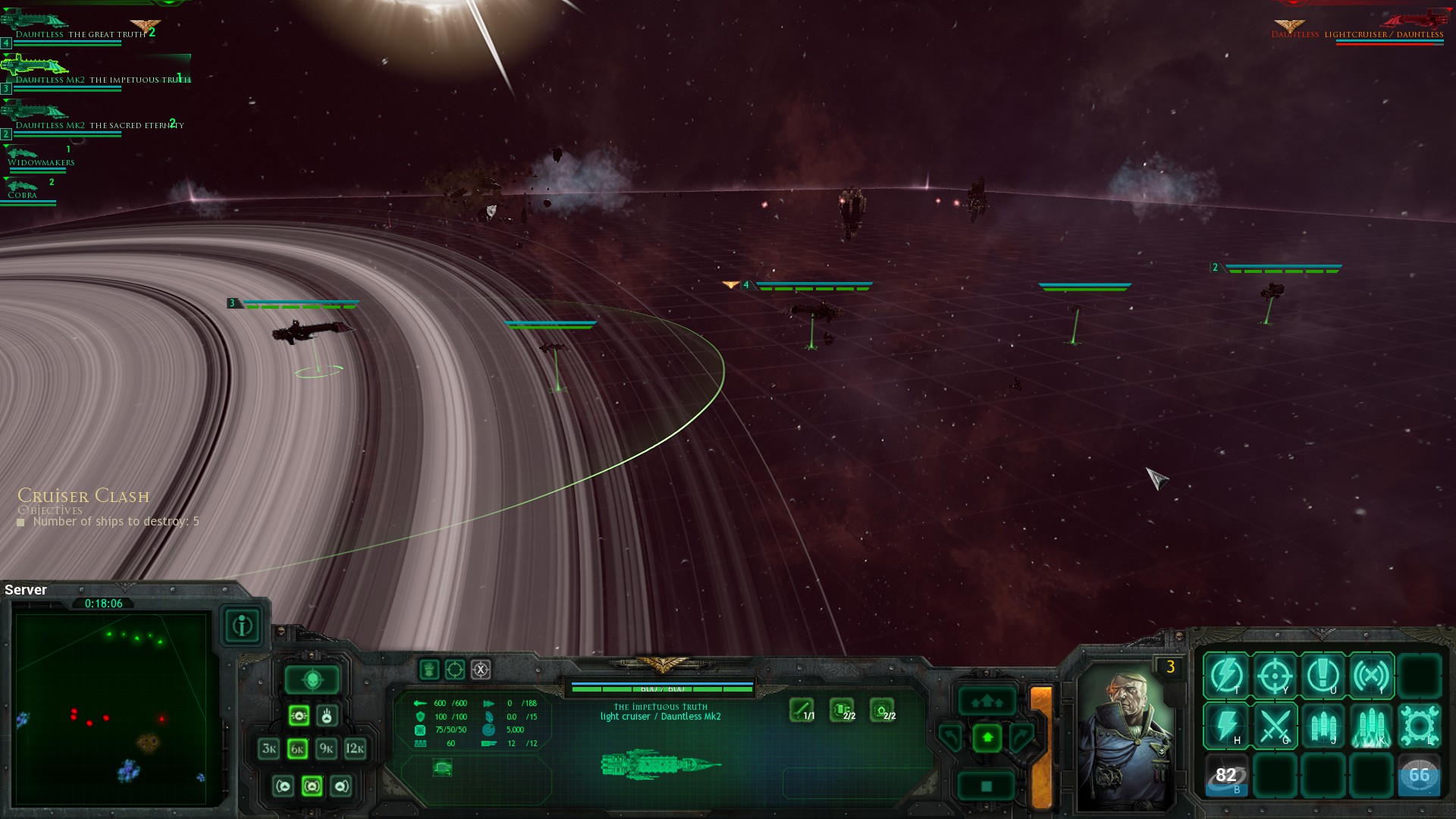 Autor ove recenzije nije previše upoznat s kampanjama, poviješću i loreom Warhammer 40k svemira, ali fanovi će znati gdje i kada je smještena single player kampanja. Gothic War unutar kojeg se izvjesni Abaddon The Despoiler pokušao domoći drevnih artefakta moći kako bi porazio sve. Jednostavan plan, ali ne ako se Imperiju to pita. Nalazimo se u ulozi admirala Spirea od kojeg se traži izgradnja flotu i osiguravanje Gothic sektora od različitih prijetnji. Osim Abaddona i Chaosa, stalne intruzije u sektor izvode piratski orkovi i Eldari, tako da će Spireova flota biti jako zaposlena svakim turnom. Single player mod nudi dugu i izazovnu kampanju. U početku nas se upoznaje s elementima igre i postepeno se ubacuju sve bitne frakcije u priču. Kako se priča razvija i dolazi do zapleta, već smo duboko u svemiru i pre zauzeti menadžmentom flote. No, odmah valja izdati upozorenje. Igra je teška. Iako isprva ne djeluje tako, ali dugoročno sve misije koje niste uspješno odigrali mogle bi vas dovesti u duboke, duboke svemirske fekalije. Unutar single player kampanje i skirmish moda naš zadatak je održavati Gothic sektor što mirnijim i onemogućiti nerpijateljima Imperija osvajanje svjetova. Skirmish je u malenoj prednosti pošto su nam na rapsolaganju sve rase. Niti u jednom trenutku nema predaha za našu flotu i svaki Renowed point je potrebno ulagati u njezino poboljšavanje i upgrade. Renowed pointove dobivamo djelovanjem flote na bojnom polju. Nekoliko stvari uvjetuje vrijednosti koje dobivamo po misiji, stoga ukoliko smo i podbacili misiju dobivamo pointove, dakako znatno manje. Prema tome ne postoji instanti fail state, osim u pojedinim single player skriptiranim misijama. Port Maw je svojevrsan hub za našu flotu gdje trošimo pointove na njezin razvoj. Upgrade damagea, oklopa, generatora, postavljanje skillova ili unaprijeđivanje časnika posade. Dosta prostora za prilagođavanje brodova i njihovu taktičku upotrebu. Klase su standardne „brodske“ pa se možemo napucavati brzim fregatama, „laganim“ kruzerima i naposlijetku mrcinama od Battlecruisera. Moram samo spomenuti kako su imena brodova sasvim u skladu duhu 40k i kad imate krstarice naziva Judgment of Truth ili Scion of Justice dobiva se poseban sloj imerzije dok uništavamo proklete heretike i orkovski šljam. Sve dakako popraćeno epskim zborskim pripjevom.