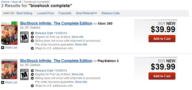 Naime, u ponudi nekoliko velikih retailera (prije svega, GameStopa i kanadskog Amazona) pojavilo se posebno izdanje treće po redu Bioshock igre, skriveno pod nazivom Bioshock Infinite: Complete Edition, koje bi u prodaju trebalo stići 4. studenog.