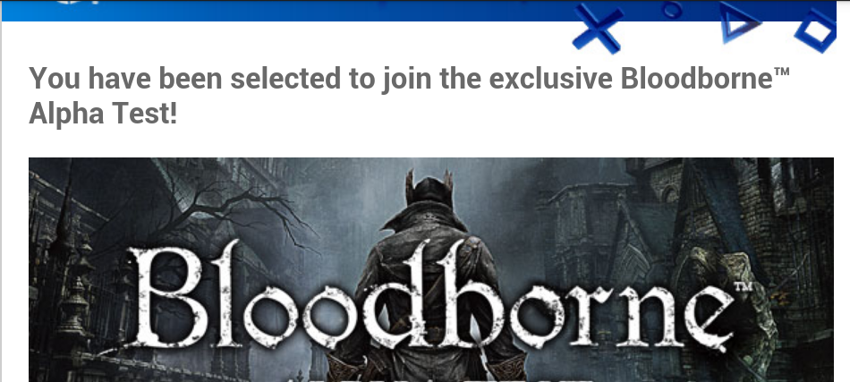 Do izlaska Bloodbornea preostalo je malo manje od pola godine, a već danas postoji prilika da igru zaigrate prije vremena! SCEE počeo je dijeliti pozivnice za Bloodborne Alpha Test. Određeni broj igrača iz Europe dobio je poruku da su pozvani sudjelovati u ekskluzivnom otvorenom testiranju. Čini se kako ključ u dobivanju pozivnice uz određenu dozu sreće i slučajnosti leži u skupljenom iskustvu u prijašnjim Souls igrama. Naime, određeni broj pozvanih igrača skupio je platinu u prijašnjim igrama.