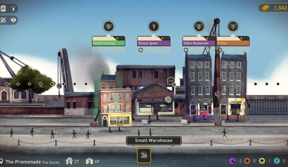 Kroz igranje ovoga naslova igrači/ice će morati paziti ne samo na strategiju izgradnje nego i održavanje zgrade i razinu zadovoljstva i sreće koju zgrade mogu imati. Od jedne zgrade, do većeg broja kvartova, biti ćemo u prilici razvijati svoje planove, svijet i boriti se protiv raznih nedaća po putu, od nedostatka struje, vremenskih uvjeta i slično.