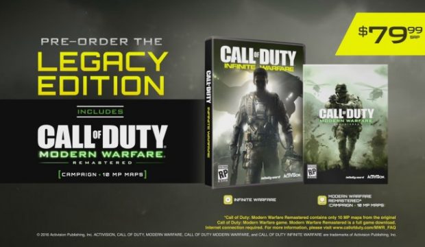 - Legacy Edition i Digital Legacy Edition ($80)– obe verije sadrže Call of Duty: Infinite Warfare i kod za download Call of Duty: Modern Warfare Remastered igre