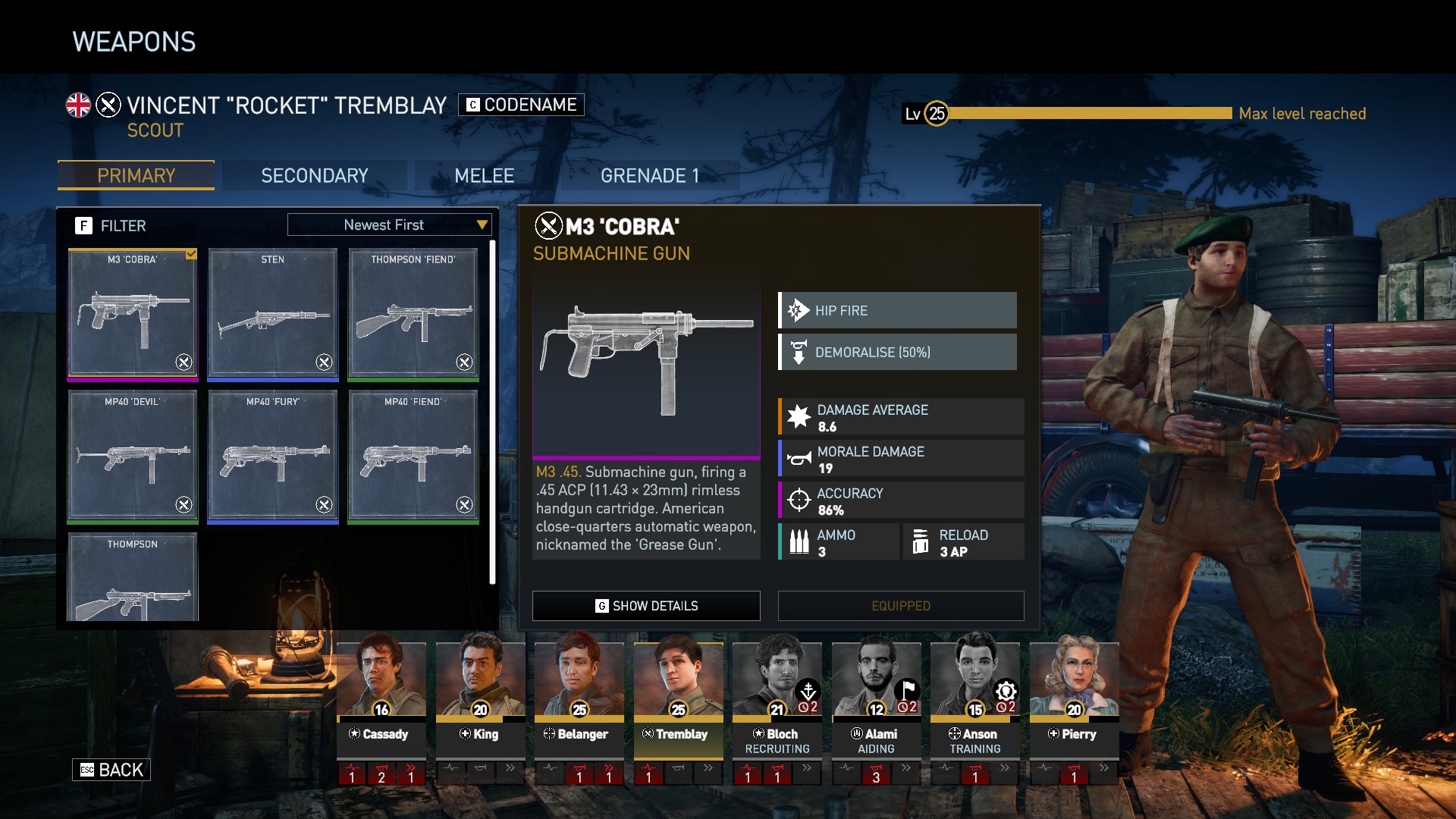 Vještine su također dostupne neprijateljima, kako sam već spomenuo kroz njihove klase. Općenito, generali podižu moral, teško pješaštvo smanjuje moral, bacači granata koriste granate i imaju visoku razinu zdravlja, i tako dalje. Možda najzanimljiviji aspekt je utjecaj frakcija na sve ovo. Što su odnosi s frakcijama bolji, to ćete imati pristup jačem oružju. Oružje i odjeća se kupuju resursima, a svaki je označen različitim bojama, od obične sive do epske ljubičaste. Svaka nacija ima svoje specifične vrste oružja i odjeće koje može koristiti, stoga nije sve univerzalno za sve, što vrijedi i za likove ženskog spola.