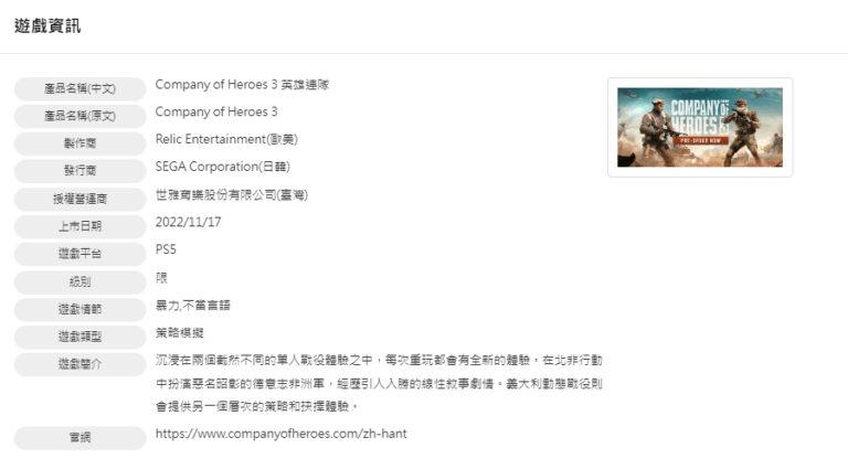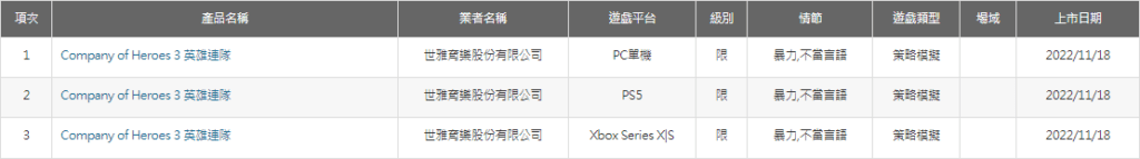 Sudeći prema informacijama koje su danas osvanule na stranici tajvanskog komiteta za rating digitalnih igara, Company of Heroes 3 bi se mogao pojaviti i na konzolama.