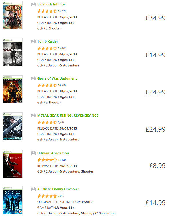 Ako je vjerovati zlim jezicima, Microsoft baš nije ponudio neke ekstra povoljne cijene ali ipak, radi se o igrama koje su prilično svježe. Cijene su preuzete sa Live-a, GB verzija. Eto ponude: