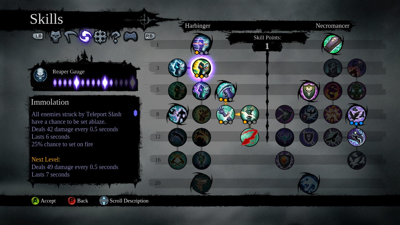 Sva oprema je u svakom trenutuku vidljiva na glavnome liku, a brojne statistike i sposobnosti koje pojedini dijelovi opreme donose, jasno su navedene, tako da se i laik može snaći i shvatiti koji je dio opreme bolji. Borbom s protivnicima i rješavanjem questova dobivate iskustvene bodove, koje možete iskoristiti za daljnji razvoj lika. Naime, u igri postoji tzv. Skill Tree, koji se sastoji iz velikog broja skillova podijeljenih u dvije kategorije – melee i casting. Melee skillovi, kao što i samo njihovo ime govori, omogućavaju glavnom liku učenje novih borbenih poteza, dok se Casting skillovi odnose na magične sposobnosti, tako da će svako svog lika razvijati u pravcu u kojem želi. Važno je napomenuti da se Skill Tree može resetirati, nakon čega svoje iskustvene bodove možete rasporediti na drugačiji način i promijeniti sposobnosti glavnog lika.