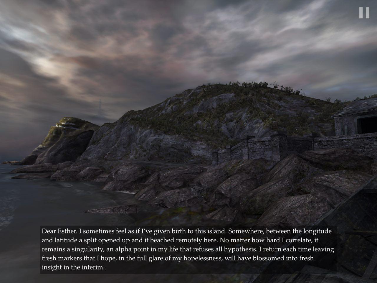 Moje oduševljenje je vidljivo još u recenziji PC verzije prije sedam godina, koju sam priložio ispod i koja dovoljno govori o tome za što je ovaj projekt Dan Pinchbecka i studenata sa Sveučilišta u Porstmouthu sve pokrenuo što se tiče The Chinese Rooma, ali i što se tiče popularnosti ovakvih naslova. Danas zbog uspjeha ove igre, imamo i svojevrsni nastavak Everybody’s Gone to the Rapture, a sada mobilna verzija, pokrenuta Unity engineom, donosi još jednom avanturu glavnoga (i pomalo nepouzdanog) naratora Donnellya koji piše pismo Esther i luta napuštenim otokom. Što je točno taj otok, da li on zaista luta, i što se dogodilo s njim i Esther ostavljam vama, i vašoj interpretaciji viđenog kroz sat-dva šetanja otokom i određenim drugim lokacijama na njemu (ili možda, izvan njega) čime ”otključavate” dijelove priče i stvarate svoju.
