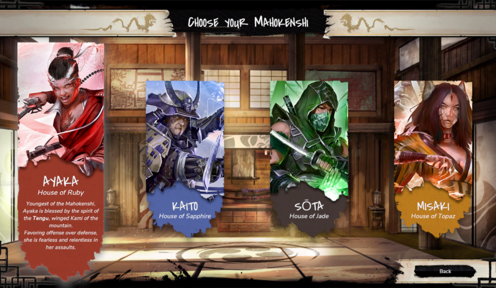 Mahokenshi nudi četiri različite samurajske kuće iliti dinastije, od kojih svaka dolazi sa svojim posebnostima i stilom igre. Odabir početne kuće omogućuje vam da crpite snagu iz svog elementarnog duha i zatim je koristite za obranu svojih plutajućih nebeskih otoka od protivnika koji vas napadaju.