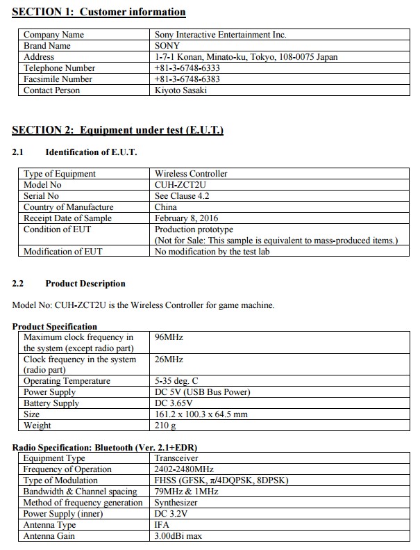 Na stranici Federal Communications Commission su se pojavili podaci o novom Sonyjevom modelu PlayStation 4 kontrolera, o kojem nije bilo riječi na E3 sajmu unatoč razgovorima o novoj PS4 Neo konzoli. Prema slikama koje možete vidjeti i ovdje, kontroler je zapisan pod kodom CUH-ZCT2U. Iako to možda ne govori puno, novinari Dualshockersa navode kako treba držati na umu da su prijašnji kontroleri imali kod ZCT1, pa ova ”dvojka” možda označava velike promjene za Sonyjev poznati kontroler. Zasada, iz objavljenih informacija na stranici, daje se isčitati da je jedina očita novost što se tiče specifikacija kontrolera, bluetooth antena (sve ostale specifikacije koje se tiču težine, baterije i slično su iste).