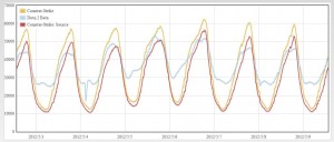 Prilažemo vam i Steamov grafički prikaz u kojem se vidi da Dota 2 u određenim satima čak prijeđe Counter Strike igre po broju igrača, a vidljiv je i konstantan rast igrača i igranja Dote, iz dana u dan.