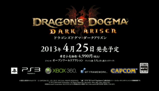 Dragon’s Dogma: Dark Arisen napokon je dobio datum izlaska. Igra će u Japanu izaći 25. travnja 2013. godine. Navedeni datum je potvrđen putem Famitsu live streama u kojem je prikazan novi trailer.