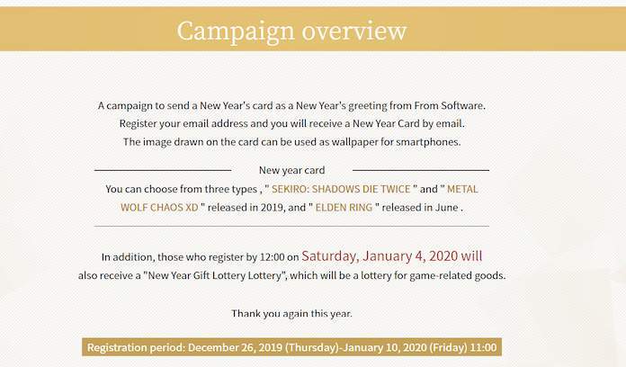 Tijekom prošlog E3 sajma, From Software je najavio Elden Ring, novi projekt koji nastaje u suradnji s autorom “Igre prijestolja” Georgeom R.R. Martinom. Tom prilikom vidjeli smo najavni trailer i doznali da će Bandai Namco igru izdati na PS4, Xbox One i PC platformama, no osim toga, ovaj famozni akcijski RPG i dalje predstavlja pravu misteriju, budući da o njemu već nekih šest mjeseci nismo čuli ama baš ništa. Mnogi su skloni mišljenju da će Elden Ring izaći ove godine, a sudeći prema detaljima koji su se našli na novogodišnjoj čestitki objavljenoj putem službene stranice From Softwarea, to bi se doista i moglo dogoditi.