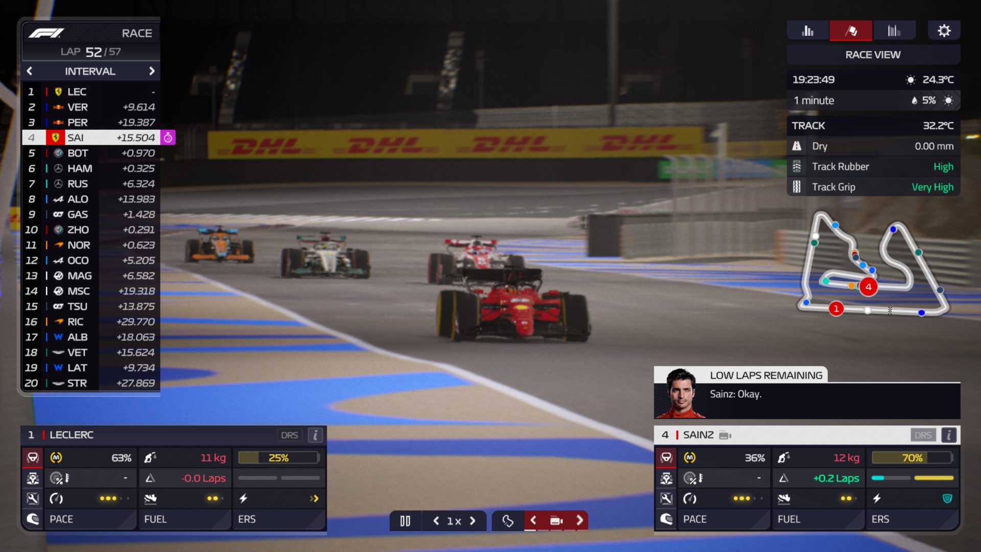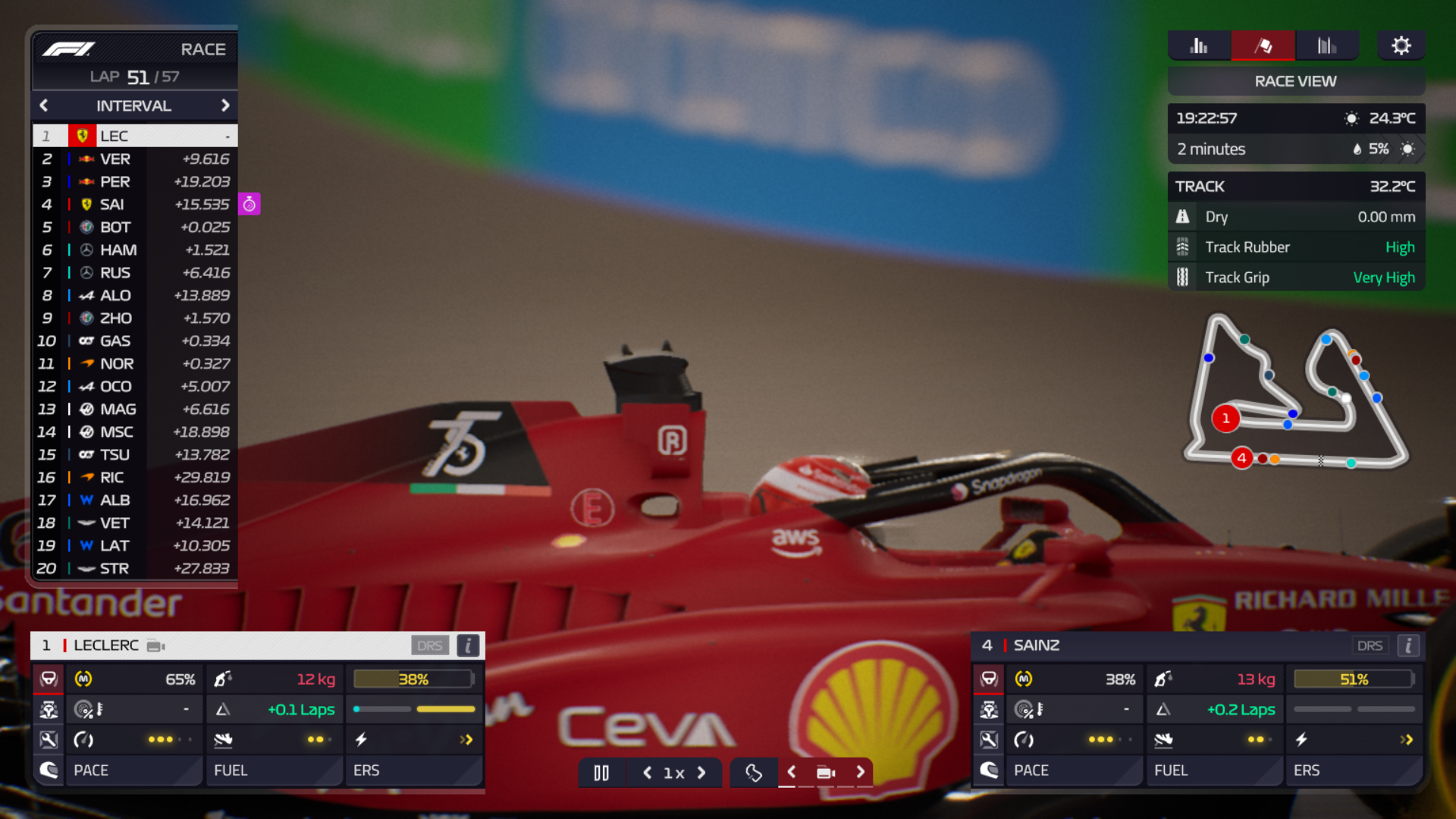 Drugi problem je traljavost ponašanja svih vozača na stazi. Na primjer, vozači najčešće udaraju u zid i ostaju (samo) bez prednjeg krila ili se neobjašnjivo zaustave pored staze i onda nastave. Ne postoje incidenti sa sudarima, pucanje gume, nego se sve završava sa prednjim dijelom. Moj George Russel je izvalio zid u Saudijskoj Arabiji, ali je ostao samo bez prednjeg dijela… Također, moj Carlos Sainz je izletio u prvom krugu u Bahreinu, stajao 20 sec i onda bez riječi krenuo. To jednostavno nije adekvatno simuliranje utrke, jer su one mnogo kompleksnije nego što F1 Manager 2022 pokazuje.
