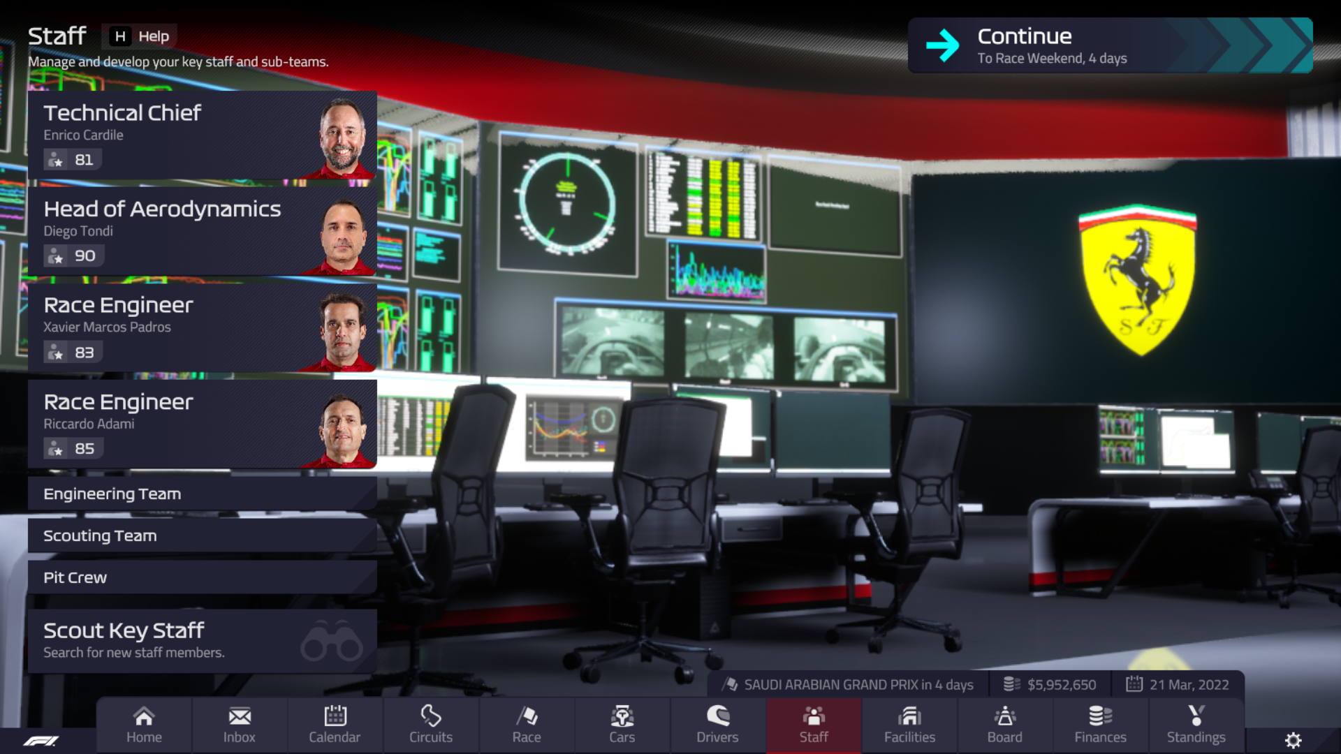 Mailovi jesu prilično jednolični, ali ipak sadrže određenu pomoć za nove igrače. Na primjer, vaš inženjer će sugerirati što bi se trebalo popraviti na automobilima kako bi bili konkurentniji, te niste prepušteni sami sebi. Isto tako, kada trošite bodove da poboljšate vozače, inžinjeri će vam sugerirati koji aspekt treba biti u fokusu. Kad smo kod toga, profili vozača su odlični i realni, nema pretjerivanja niti potjecivanja. Na primjer, Lewis Hamilton i Max Verstappen su dva najbolje rangirana vozača, ali ni oni nisu ocijenjeni savršenim ocjenama. Ali, njihove performanse u utrkama ne ovise samo od njih samih, nego kompletnog tima te koliko imaju povjerenja jedni u druge. Fanovi će znati zašto je Bono najvažniji za Lewisa.