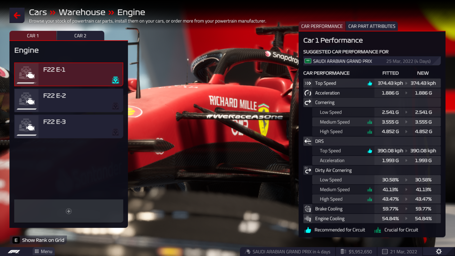 Dakle, da rezimiramo ovaj prvi dio gameplaya: mikromenadžment u F1 Manager 2022 je najbolji aspekt igre i teško je pronaći ozbiljnu zamjerku. Kada bismo baš išli u detalje, možemo prigovoriti jedino sistemu navigacije kroz obilne menije, jer često nemate načina da se automatski vratite na početni ekran, jer ste otišli predaleko.