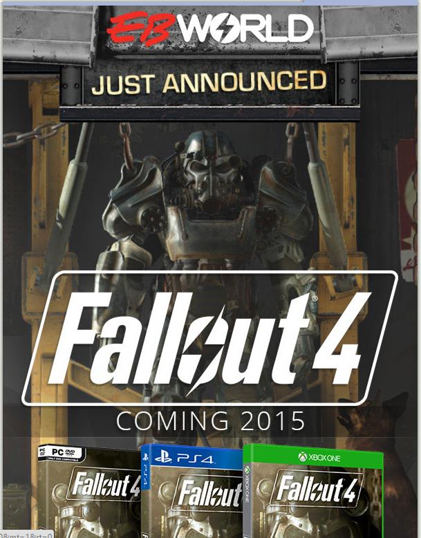 Možda i najčvršći dokaz koji trenutno imamo vezano za datum izlaska Fallouta 4 stiže nam od australijskog EB Gamesa, koji je odmah nakon najave igre objavio promo sliku na kojoj je jasno navedena 2015. godina kao godina izlaska igre.