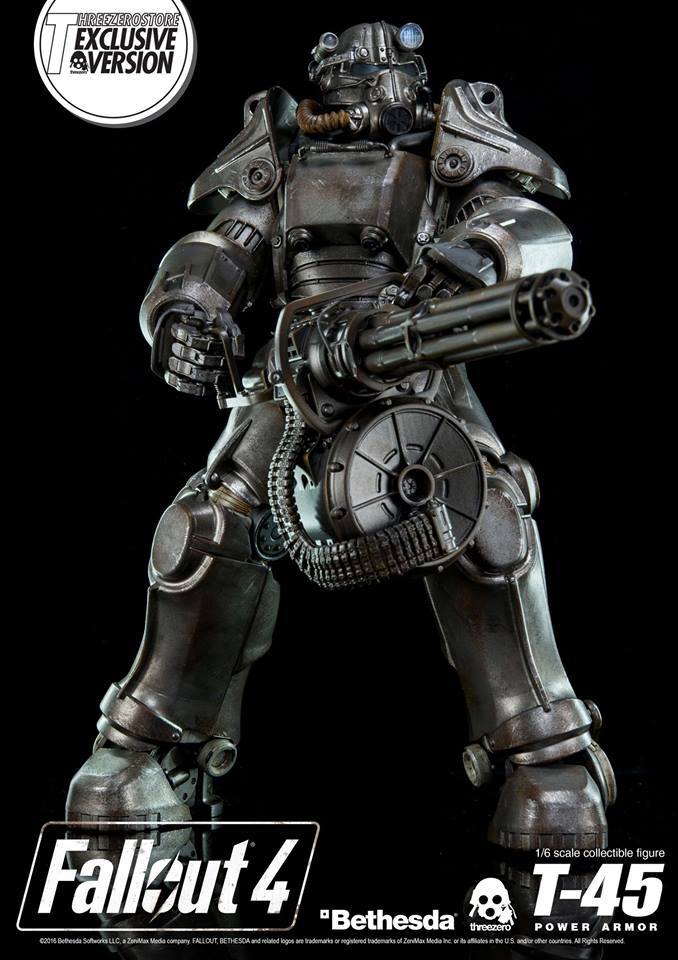 U pitanju je pokretna figurica visine 14.5″, čiji je vanjski oklop moguče skinuti, a ispod kojeg se krije izimno detaljan exoskelet. Također, vrijedi napomenuti da će vanjski olop T-45 Power Armor figurice biti moguće mijenjati s drugim Threezerovim nadolazećim Power Armor figuricama.
