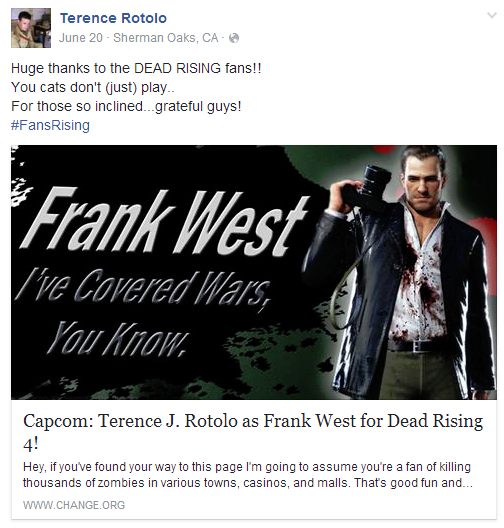 Naime, brojni fanovi nisu oduševljeni činjenicom da glas Franku Westu u Dead Risingu 4 ipak neće dati uspješni filmski kaskader / glumac Terence J. Rotolo, već je uloga maloprije spomenutog protagonista povjerena za sada nepoznatom glumcu.