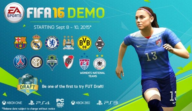Electronic Arts objavio je datum izlaska FIFA 16 demo verzije. Demo izlazi 8. rujna* za PlayStation 4, PlayStation 3, Xbox One, Xbox 360 i PC.