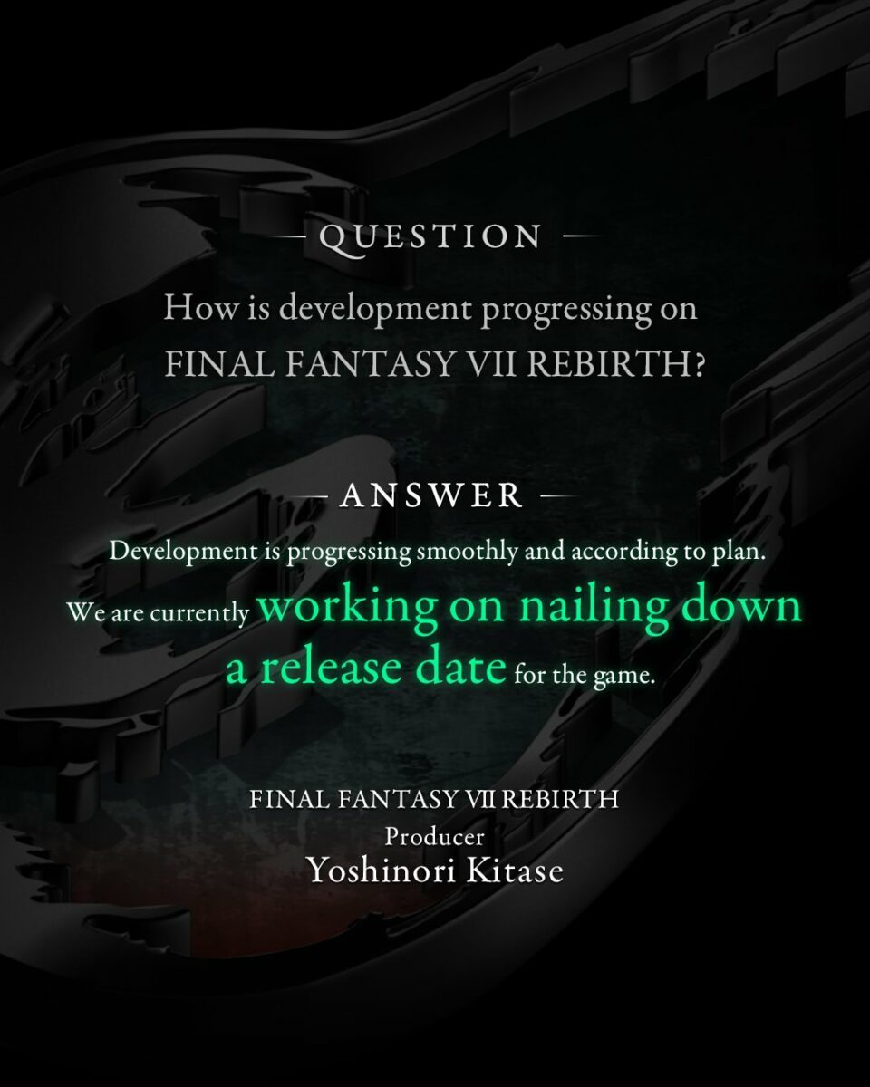 Developer comment number 3#FF7R pic.twitter.com/V111xHrWJZ— FINAL FANTASY VII (@finalfantasyvii) June 4, 2023