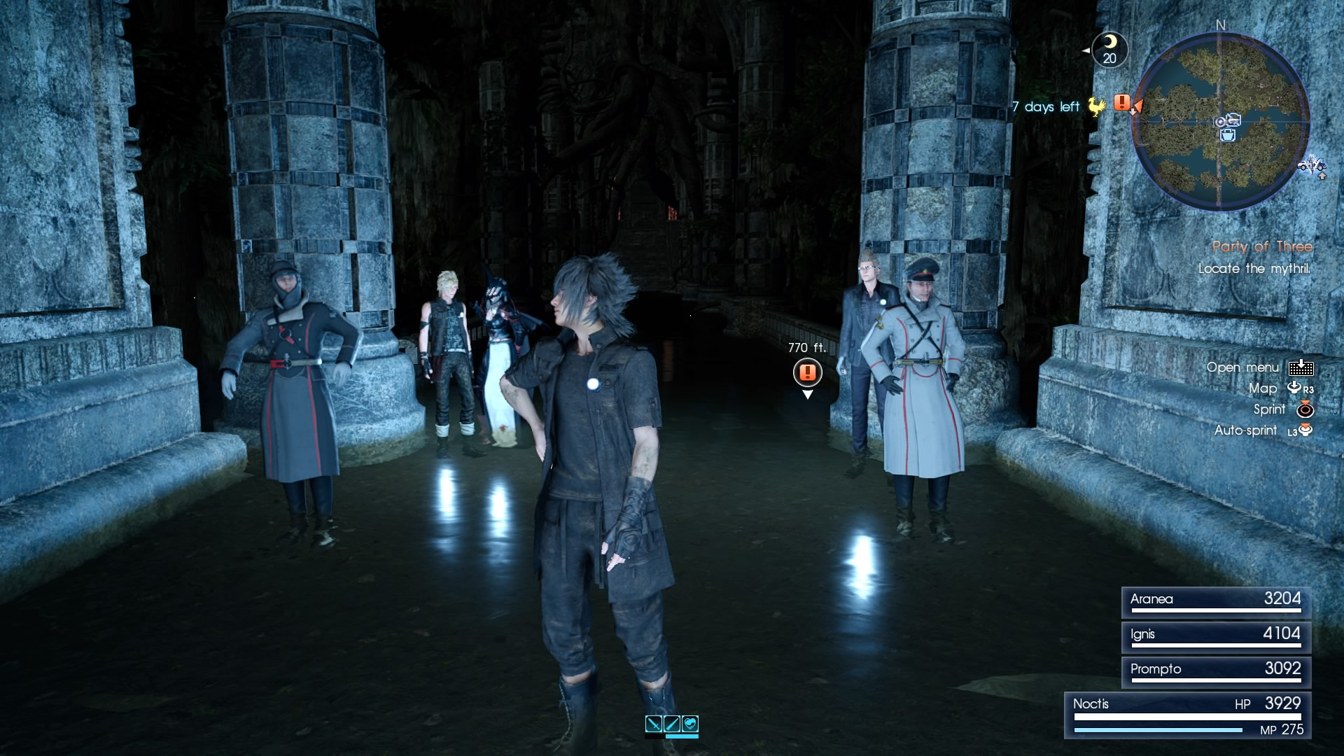 Final Fantasy XV je priča u kojoj pratite princa Noctisa Lucisa Caeluma i njegova tri tjelohranitelja/prijatelja na njegovom putu ostvarivanja proročanstva koje ga prati od djetinjstva. Nešto što je u osnovi jako jednostavno pretvara se u emotivnu, melankoličnu avanturu u kojoj je najveći fokus stavljen na same likove i njihove odnose. Ovo je prava road trip igra, velik dio vremena provest ćete u opuštenoj vožnji cestama, uživajući u krajolicima i slušajući razgovore naših junaka. Iako se možda na početku čine kao čvrsto ukorijenjeni u stereotipne kalupe, svaki od njih se s vremenom razvije u osobu koja će vam se zavući pod kožu, ono što definitivno trebate učiniti da se to dogodi je dati si vremena. Često je primamljivo žuriti, pokušati što prije doći do završetka priče, no ovo nije takva igra, nije takav Final Fantasy. Konstantno ćete biti u prilici prihvatiti neki novi sidequest, i svaki od njih krije neku novu interakciju, neku novu priču radi koje ćete imati osjećaj kao da ste se još više sprijateljili sa svojom ekipom. Svaki od likova ima svoju specijalnost, „grubijan“ Gladiolus istražuje i pronalazi predmete, ironični Ignis voli kuhati, luckasti Prompro fotografira, a glavni lik Noctis obožava pecanje. Nemojte zanemariti njihove hobije, jer su savršeno implementirani kako u gameplay, tako i u tu centralnu nit priče koju čini njihovo prijateljstvo. A to prijateljstvo je prikazano na stvarno maestralan i emotivan način, na kraju igre ćete imati osjećaj kao da kontrolirate ekipu koju poznajete jako dugo, a to je nešto što nam je nedostajalo od desetog FF nastavka. Ovdje je to, usudili bismo se reći, dovedeno do savršenstva.