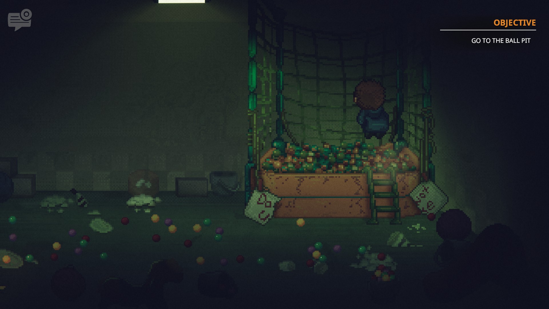 Naime, radnja je smještena paralelno u sadašnjosti i u ljeto 1985. godine, a dječak Oswald, kojeg mi kontroliramo, ima mogućnost skakanja iz jednog vremenskog perioda u drugo uz pomoć bazena s lopticama (naslovna „jama“). Nažalost, dok u sadašnjosti možemo istražiti više lokacija u gradu – od naše kuće i pizzerije, do škole i knjižnice – u prošlosti smo ograničeni samo na Freddyjevu pizzeriju. Zaplet radnje dogodi se relativno brzo, što je jako pohvalno jer igra ne trati nimalo vremena, a prolog kao takav genijalan je način upoznavanja igrača s gameplay mehanikama. Priča ima onaj klasični element „dječjeg“ horora, a to je da jedino djeca znaju da se nešto loše događa, i samim time, jedino oni mogu nešto učiniti u vezi toga, a svijet skoro kao da i funkcionira po dječjim pravilima: Oswald svaki dan odlazi u pizzeriju na večeru jer ju njegov otac ne može pripremiti doma, a majke vječito nema kod kuće te ne primjećuje ništa čudno u vezi s ocem čije je mjesto zamijenio jedan od likova iz Freddyjeve pizzerije, Žuti zec, nakon što ga je oteo i odvukao u bazen s lopticama.