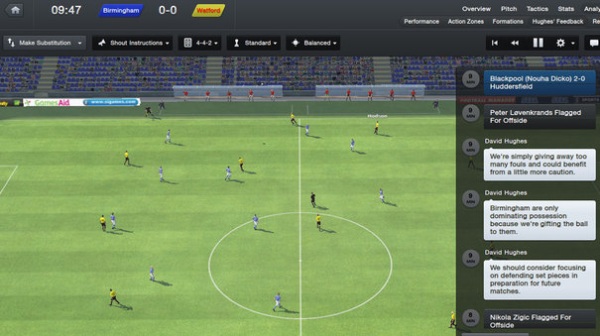 Za vrijeme utakmice vaš „Assistant Manager“ će vas konstantno upozoravati na događaje u utakmici koje možda ne primjećujete. Na primjer, da suparničko krilo ima previše prostora, da gubite previše zračnih duela, da bi trebali promijeniti formaciju itd… Ovo bi trebala biti odlična stvar za igrače poput mene koji svaku utakmicu gledam na „key highlights“. (Zaista ne znam nikoga tko drugačije prati utakmicu, a i ovako zna potrajati 10 i više minuta …) Međutim, njegove informacije nisu baš uvijek pretjerano korisne. Kada bi me upozorio na opasnost protivničkog igrača, a ja ga zatvorio, pojavio bi se netko drugi. (Protiv bilo koje ekipe da igrate, uvijek će netko biti prijetnja …) Gotovo svaku utakmicu me upozoravao kako se neki od mojih igrača uopće ne razumije sa svojim suigračima zbog jezične barijere (tek dovedeno pojačanje), a nerijetko je taj igrač bio „man of the match“ ili jedan od ponajboljih. Isto tako, situacija se (po njegovim riječima) mijenja iz minute u minutu. Na primjer, u 28. minuti pri rezultatu 0:0 i prilično izjednačenoj statistici ništa ne valja! Ne dobivamo duele, cijela obrana griješi, a napadači ne mogu ništa. U 30. minuti zabijamo za 1:0 i odjednom ruže cvjetaju, stoperi su neprelazni, vezni igrači pucaju od snage i kreativnosti, špice trpaju, a sva djeca Afrike su nahranjena i zbrinuta. (Doduše, kad igrate s Arsenalom kao ja, situacija se zaista brzo mijenja …) Sve u svemu, ova dobra ideja nije sasvim do kraja uspješno sprovedena, te komentari i informacije vašeg „Assist Managera“ ponekad znaju biti izuzetno zbunjujući.