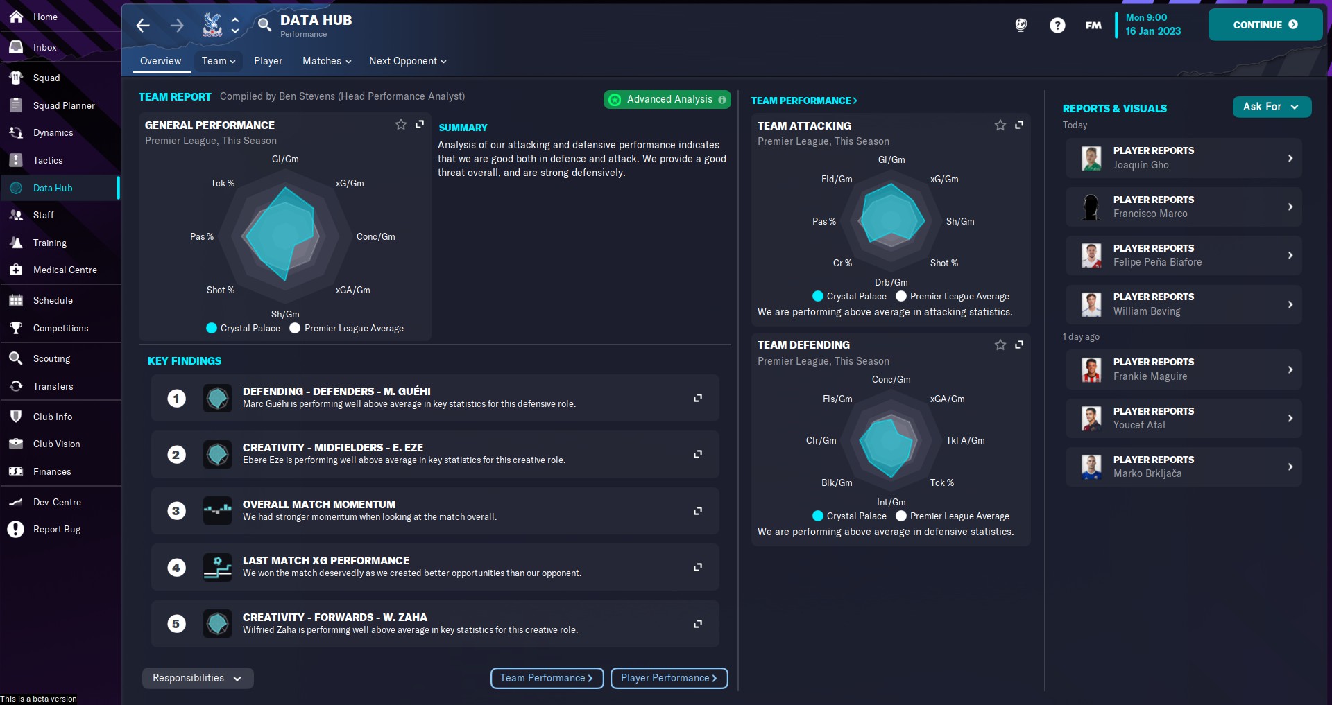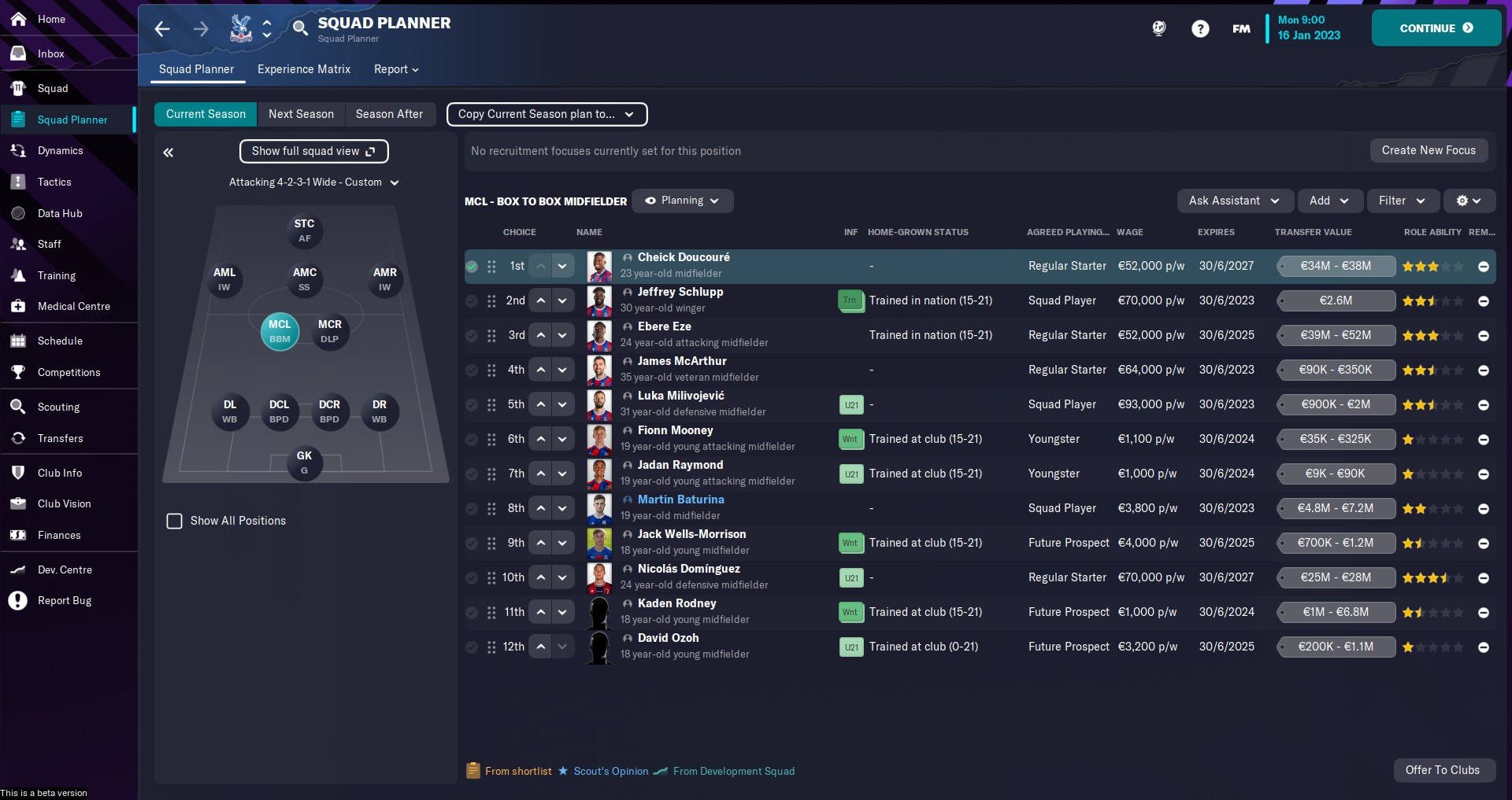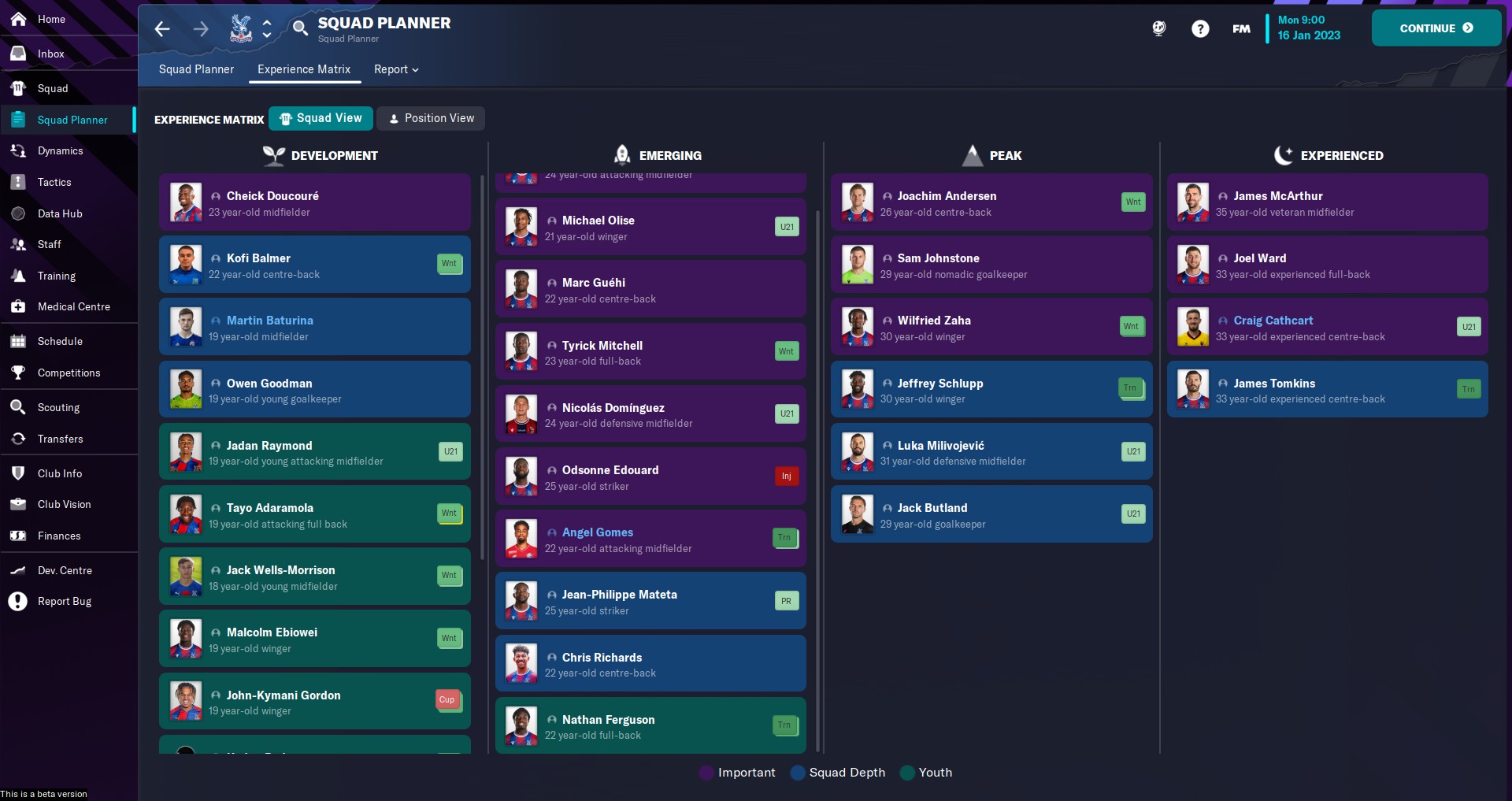 Ono što zasigurno možemo priznati jeste to da će svi oni ljubitelji Football Managera uvijek potrošiti tisuću sati na ovu igru, makar im igra nije toliko sjela ili im se određene stvari ne sviđaju. Football Manager 2023 će dosta olakšati život igračima kada su u pitanju klasične dileme – kako odrediti svoju momčad, koje su njezine slabosti i koja područja treba popravit? Uvedene su nove značajke, Squad Planner i Experience Matrix. Squad Planner dat će vam detaljan uvid u vašu ekipu, pokazuje koji nogometaši igraju određenu poziciju, kada im istječe ugovor, koja im je cijena transfera, je li nogometaš domaći ili stranac, te kako će vaša ekipa izgledati sljedeće sezone i sezone nakon nje. Osim toga, imaju različite dodatne značajke unutar Squad Plannera, kao što su filteri, a možete također pitati svog pomoćnog trenera da vam pomogne pri odabiru ekipe, možete dobiti mišljenja o određenim nogometašima od vašeg cijelog osoblja, te u Squad Planner dodati nogometaše koje želite kupiti ili koji su u vašem užem izboru. Iako možda nećete provoditi sve vrijeme na ovom ekranu, zasigurno će ova značajka biti korisna kod početka svake sezone i prijelaznog roka. Nažalost, uvođenje igrača u Squad Planner zahtijeva dosta ručnog posla, jer trenutačno ne postoji mogućnost automatskog dodavanja igrača koji se nalaze u klubu, a ovo se odnosi na igrače koji se nalaze u mlađim kategorijama ili koji su na posudbi, dok će igrači koji se nalaze u prvoj postavi biti automatski selektirani u Squad Planneru.