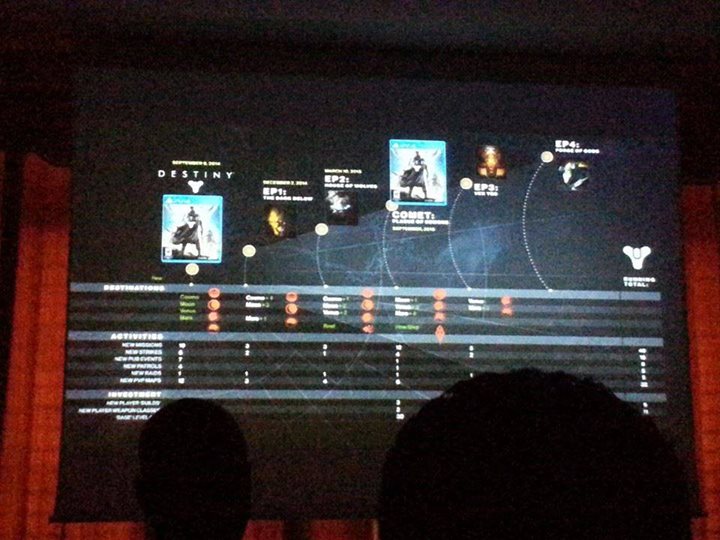 Tijekom današnjeg dana jedna od najpopularniji fotografija jest ona koja donekle otkriva Bungiev plan sa Destinyem. Točnije, na fotografiji se vide planirane ekspanzije koje bi se trebale izaći tijekom ove godine. Fotografija koju vam i mi pokazujemo ovdje navodno je nastala za vrijeme internog sastanka i prvi puta se pojavila na talijanskoj Facebook stranici posvećenoj igri još 1.listopada. Nakon toga se pojavila na Bungie.net forumu raznim neslužbenim Twitter računima posvećenima igri te na Redditu, nakon čega je tek zadobila veću pozornost.