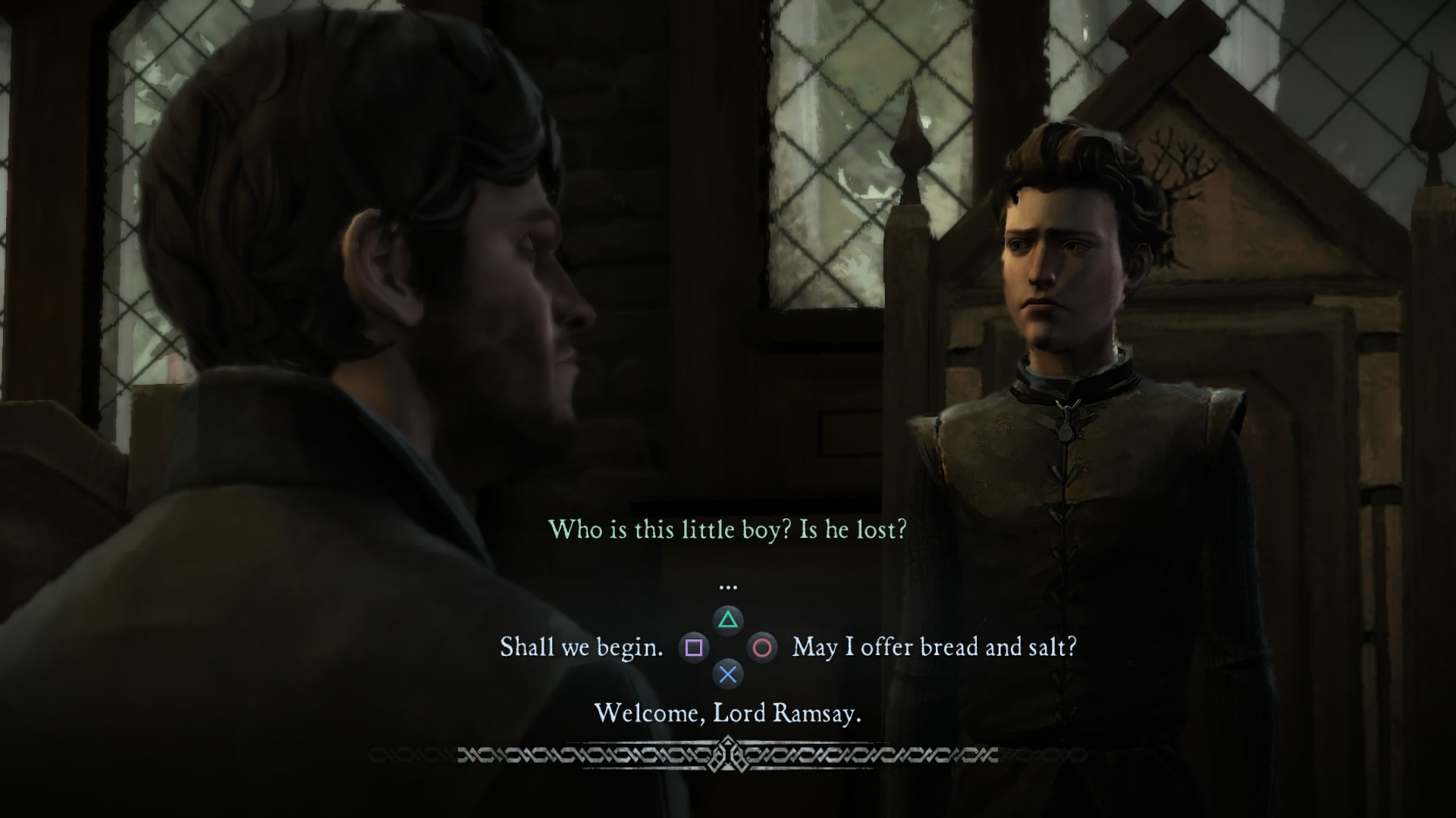 Za razliku od The Walking Deada i The Wolf Among Usa, prva epizoda Game of Thronesa pred igrače stavlja znatno manje izbora. U prvoj epizodi, igrači će se susresti s pet situacija, u kojima će morati donijeti neku od uvijek teških odluka ključnih za dalji napredak, međutim te odluke znatno manje utječu na ishod, nego što je to bio slučaj s gore spomenutim igrama.