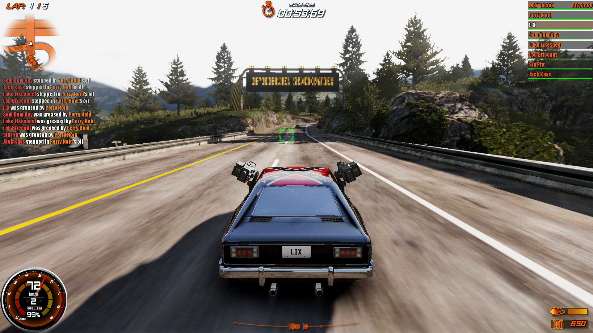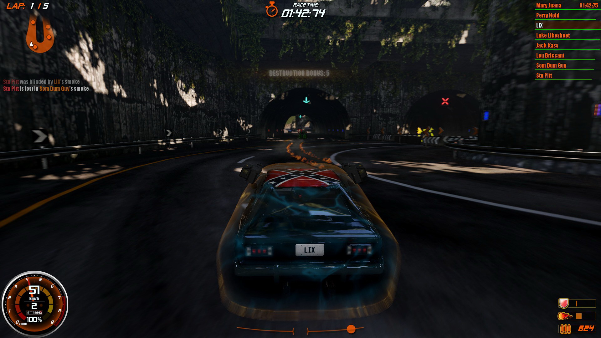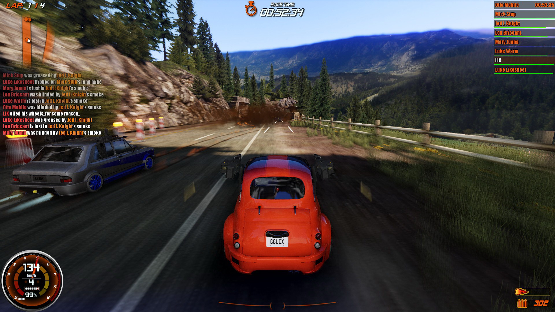 Ali isto se može reći da im je od buljenja u čačkalicu promaknuo balvan. Par balvana se provuklo neopaženo. Najveći balvan svakako je težina igre. Ja sam se dobro oznojio igrajući na medium postavkama, a one bi se trebale gledati izazovnima, ali ne i nemogućima. Problem je u tome što protivnici relativno zanemaruju jedni druge kad nisu u kadru s vama. Oh, da, ostavljati će bombe i ulje tamo gdje vam to najmanje treba i isto tako će nalijetati na te zamke, ali neće se voditi bespoštedni rat iz svih topova osim ako nisu sa vama u kadru. Zato se zna desiti da vodeći automobil ili dva odjure daleko ispred gomile koja se borila do posljednje kapi krvi, a njih dvoje naprijed potpisali pakt o nenapadanju i bjež’. Auti imaju health status pored svog imena pa znamo da se tri kruga nije promijenilo zdravstveno stanje im tamo naprijed. Igra na easyu je opet lagana toliko da ako znate dobro mapu možete izbiti na čelo vrlo brzo i ne ispaliti ni jedan šaržer do kraja, osim ako stignete zadnjega, a to se ne dešava tako često. Hard razina? Sram me priznati, ali nisam probao.