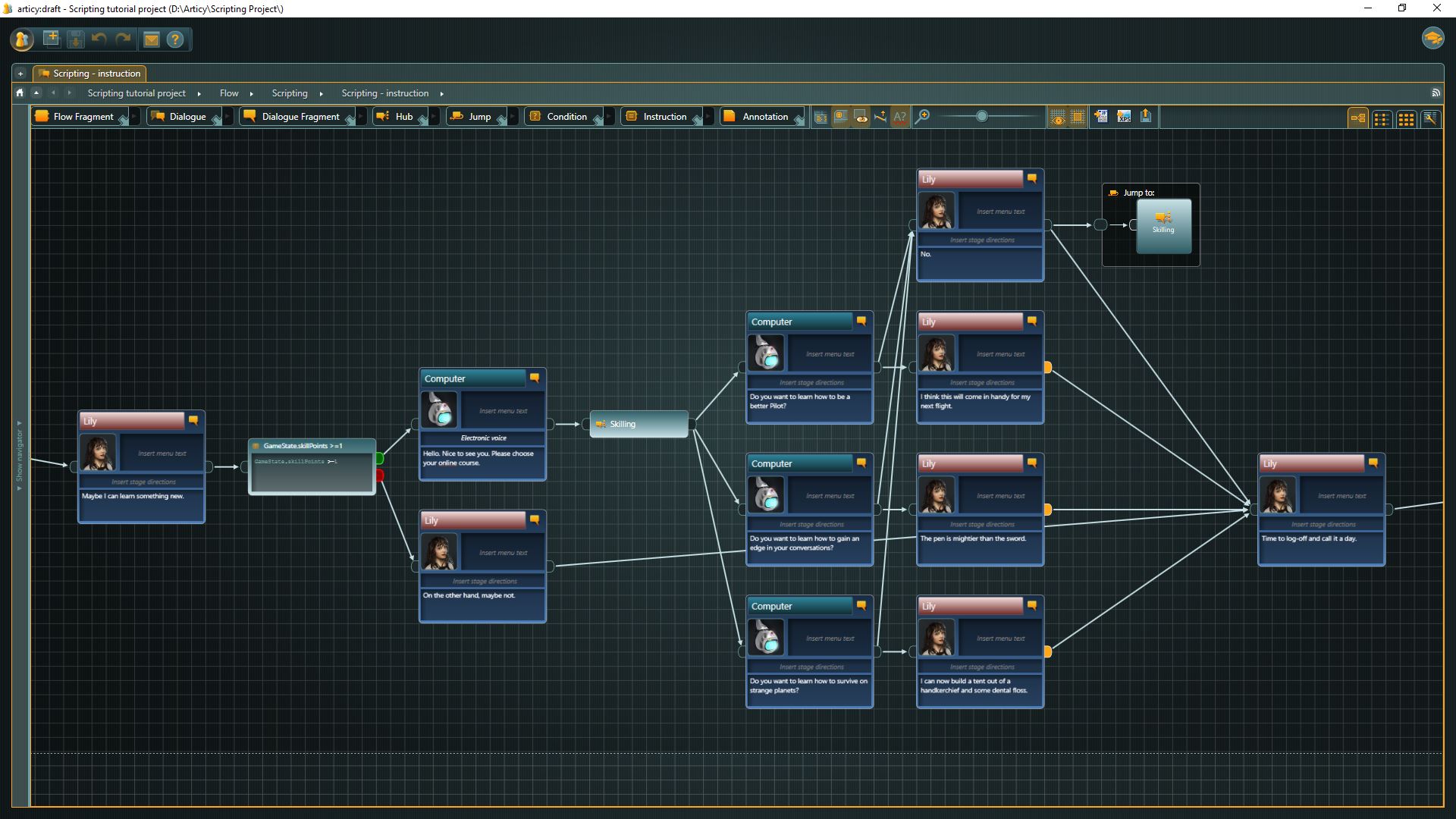 Trenutno radim i na scenarijima. Pišem scenarije u Articy Draftu, koje zatim portamo u Unity. Važno je imati tehničko znanje kako bi se ubrzao proces i olakšala komunikacija s ostatkom tima. Moj posao nije samo sjesti i pisati – idealno bi bilo da scenarist može testirati svoj rad direktno u engineu.