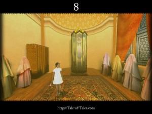 Igra 8 je o poznatoj bajci, a glavni je lik mlada djevojka, pa će to vjerojatno biti atraktivnije mlađoj igračkoj popluaciji. Oni su slobodni uživati u igri iako je možda neće razumjeti ili barem primijetiti složenost koja leži u njoj. Ovo je u samoj prirodi bajka. Što smo stariji, otkrivamo mnogo više značenja u njima nego što smo to otkrili kao kao djeca. Radnja ove igre se odvija nakon što je veći dio bajke ispričan. Princeza se ubola u prst, pa je cijeli dvor zaspao. Palača je okružena gustom šumom koja je počela nekontrolirano rasti. Prinčevi su ušli u dvorac, u nadi da će probuditi princezu. Ipak su ostali zatočeni u dvorcu ostatak svojih života, pridruživši se zaspalima. To je događaj koji se dogodio osam puta u pet stoljeća. Igra počinje, kao i sve ostale naše igre, u modernom vremenu. Priča je sadržana u vašim iskustvima u palači, pa je to više narativna situacija nego priča za sebe.