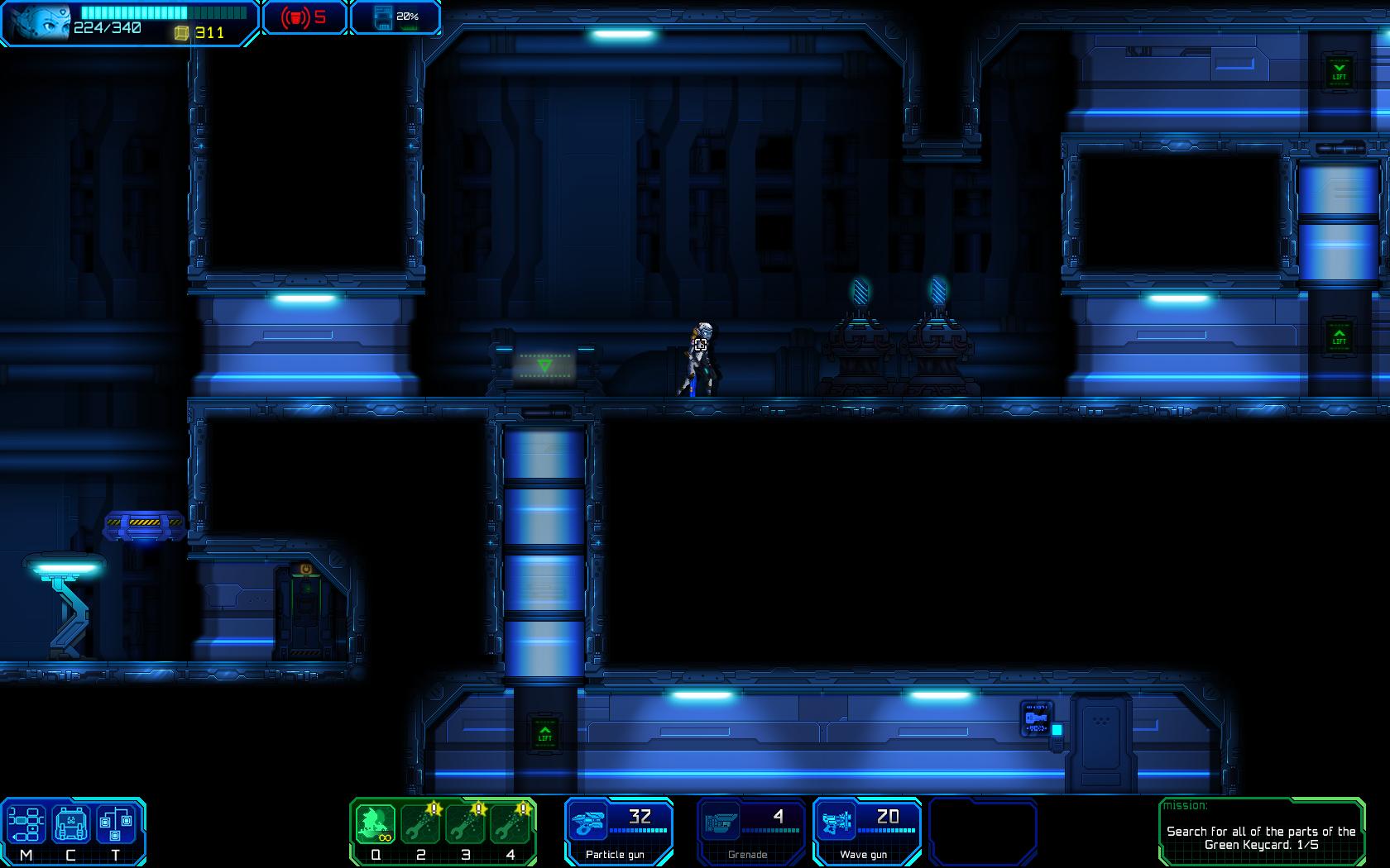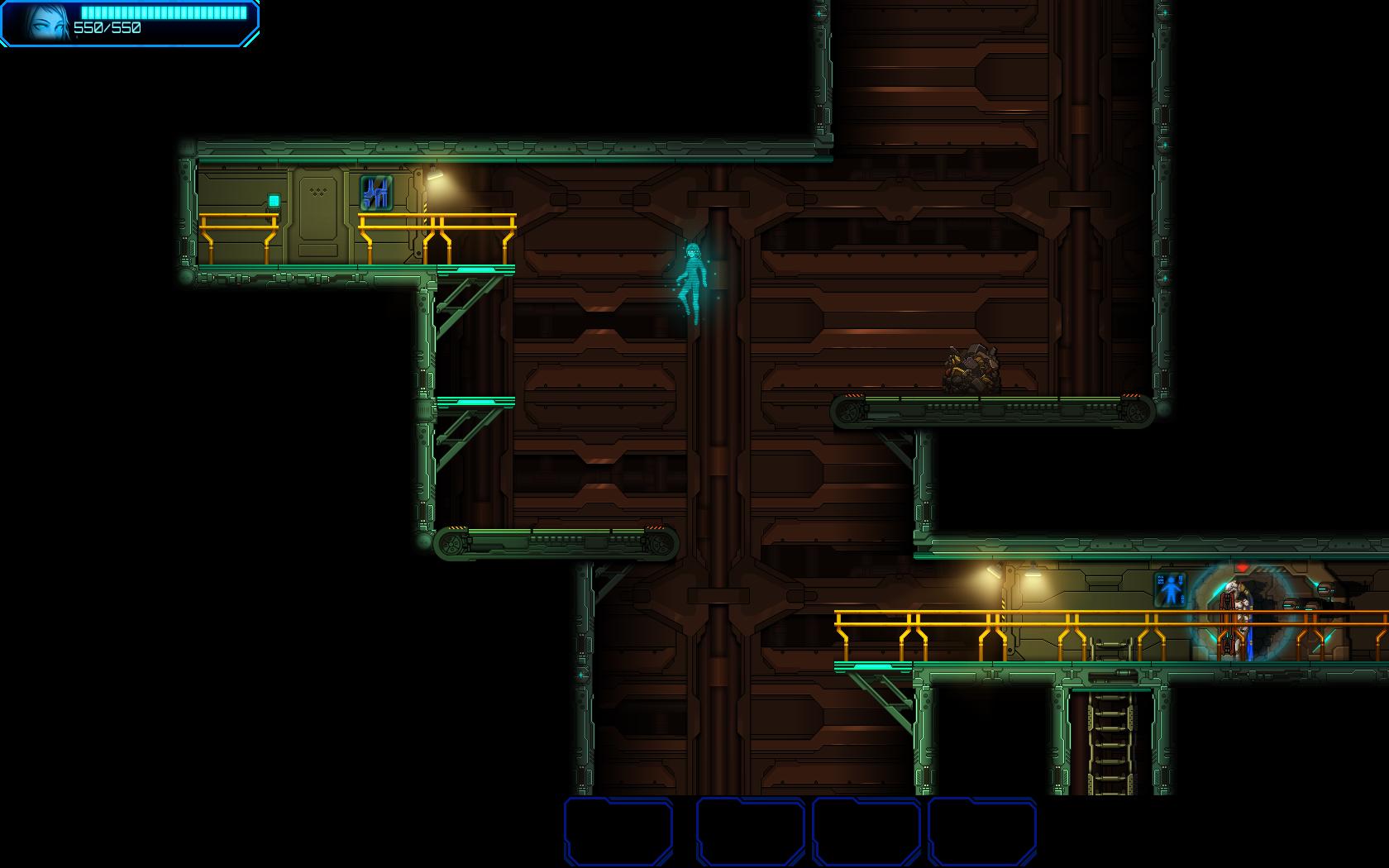 Većina metroidvania naslova živi i umire na kvalitetu level dizajna. Način na koji ćete povezati vaše interaktivne mehanike sa okolinom koju predstavljate je jedna od najbitnijih žanrovskih postulata, a nju Ghost 1.0 izvrsno apsolvira. Zbog dobre ludonarativne integracije i bogatstva mehanika koje posjeduje, ovaj naslov je učinio pravi potez što je sam dizajn okoline sveo na varijacije nekoliko prepoznatljivih elemenata, postepeno i oprezno uvodeći nove. Ovo je kao rezultat dalo dizajn koji je dovoljno raznovrstan, ali ne i pretjeran u insistiranju na novitetima. Svemirska baza je sastavljena od četiri zone koje se postepeno otkrivaju. Prelazak iz jedne u drugu zonu je linearan, ali istraživanje unutar zone nije. Svaka zona posjeduje neku tematsku specifičnost i generalno drugačiji prizvuk, da li je riječ o muzici, protivnicima, bossovima ili generalnom ugođaju. Jednom kada otkrijete novu zonu, možete se vraćati u prethodnu i obrnuto. Zone su međusobno povezane ili koridorima ili tunelima, koji predstavljaju svojevrsna područja međuzona. U konačnici, kada otkrijete sve zone možete se slobodno prebacivati između njih. Svaka zona sadrži i po jednog bossa, čiji balans u klasičnom modu nije baš najbolje izveden, pogotovo ako ste skloni šopigoholičariti razna oružja i njihova unapređenja, no dovoljnu su specifični da drže pozornost.