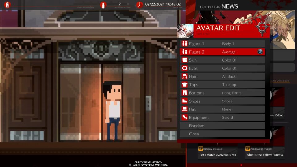 Razlozi za odlično online igranje možemo pripisati prije spomenutom rollback netcodeu, koji minimalizira lag praktički do savršenstva. Likovi su iznimno zabavni, kao i inače u Guilty Gearu, čak i kad su neki urnebesno spori i na prvi pogled beskorisni. Naravno, i dalje imamo jasne favorite, kao što je Sol Badguy ili Axl, no za detaljniji sud ćemo ipak morati pričati kompletnu igru. Ono što je bilo iznimno šokantno, i čemu sam se nadao da će ovdje biti napokon ignorirano, su ti neizbježni lobbyji. Arc System i dalje želi da prije bitke imamo nekakvo online iskustvo, tražimo igrače/ice, komuniciramo s njima, i trošimo nepotrebnu energiju i vrijeme da dobijemo dobro uparivanje. Ovoga puta naš avatar (kojeg, naravno, možemo uređivati) je napravljen u pikselastom retro stilu, smješten u neku vrstu hotela sa katovima po kojima se krećete i tražite druge avatare (online igrače/ice) i pokušavate pokrenuti igru. Da stvari budu još kompliciranije, vaš avatar može uspraviti mač čime daje do znanja ostalima da traži borbu, dok nedostatak mača govori da…ne znam, samo šetate po katovima jer vam je dosadno. Ne znam, znam samo da je i dalje ovaj sustav nepotreban a ovdje je doveden do aspurda. Često je zbog svog šarenila nepregledan, zbunjujući i na kraju vas dovede do toga da samo želite igrati protiv nekog bez obzira koji su level, kako ste došli do njega i odakle su. No, u tom smislu igra jako dobro postavlja tiere, brzo ”izračuna” vašu početnu kvalitetu te vas upariva samo sa sličnim igračima/icama, što je svakako pohvalno. Šteta je što prilikom uparivanja ne možete birati s kojim likom ćete igrati nego to sve rješavate prije traženja žrtve po ovog pikselastom hotelu. Puno je tu zbunjujućih stvari, no može nas tješiti to što je u konačnici sama igra dosta dobra.