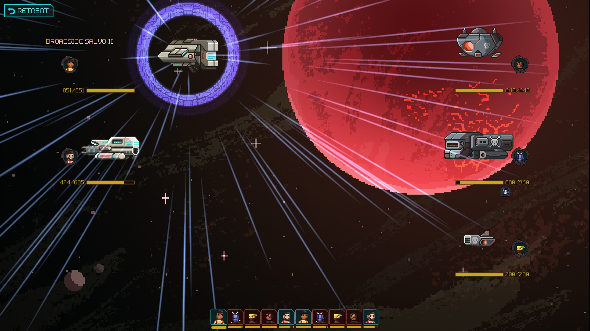 Da igra ne posuđuje samo elemente iz popularnih SF franšiza, vidimo i u combat sistemu, koji je podijeljen na dvije grane, combat brodova i combat posade/away ekipe. Oba sistema funkcioniraju po uzoru na japanske RPG-ove. Borba se izvodi na poteze, birajući brodske/posadne napade različitih svojstava i statova. Češći su sukobi u svemiru, i imaju mnogo više prostora za menadžment i taktiziranje. Tako ćemo ih opremati skillovima i unaprijeđivati u „garaži“, dok ćemo posadu trenirati i opremati u akademiji. Uglavnom ćemo imati informacije o neprijateljskim brodovima prije sučeljavanja, pa je razborito dobro promišljanje i kombiniranje unutar flote. Klase brodova se dijele za injženjersku, taktičku i znanstvenu funkciju, pa će tako imati i svojstvene skillove. Npr. injženjerski brodovi imaju fokus na „heal“ skillove, taktički na damage, a znanstveni na različite gimmicke. Kao i kod svake posade, časnici nose svoju odgovornost. Tako se bilo koja radnja ne može odvijati bez nadgledanja časnika, kao što se niti jedan brod ne može otisnuti u svemirske vode bez dodjeljenog kapetana. Stoga će u početnim fazama biti poželjno što prije sagraditi objekte potrebne za njihovu obuku. Simpatična je i opcija nazivanja časnika i brodova po našem izboru. Iako bezazlen detalj, veže vas za posadu i brodove, što je slično efektu koji je imao (i još ima) XCOM.