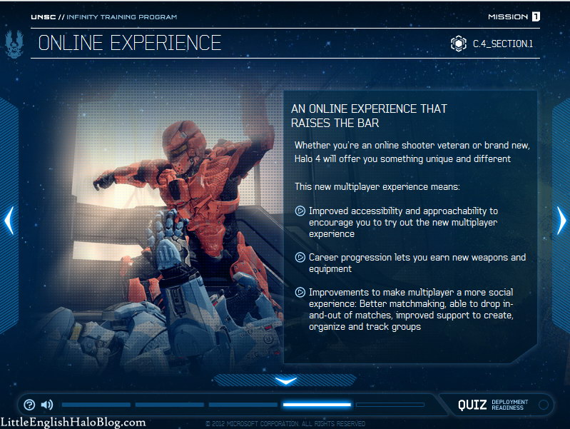 Tako se na ExpertZoneu našao blitz kviz vezan uz Halo 4, a prije samog kviza korisnici su mogli pregledati kratku prezentaciju o novitetima koje donosi Halo 4. Tako smo doznali da nas u novim avanturama Master Chiefa očekuje 10 novih oružja, 2 nova vozila (uz stare favorite poput Warthoga). Ono što je posebno istaknuto jest novi dodatak u već dobro poznatom i hvalospjevima obasipanom multiplayeru po kojem je Halo serijal poznat.
