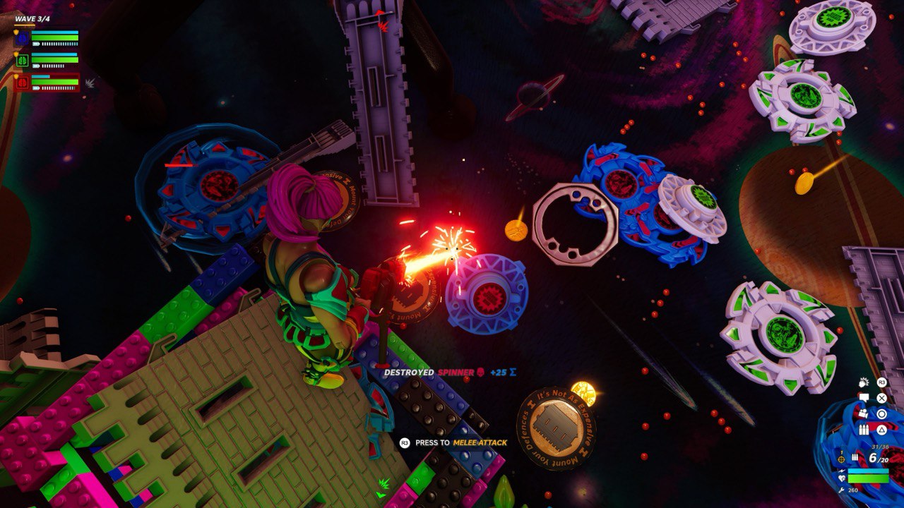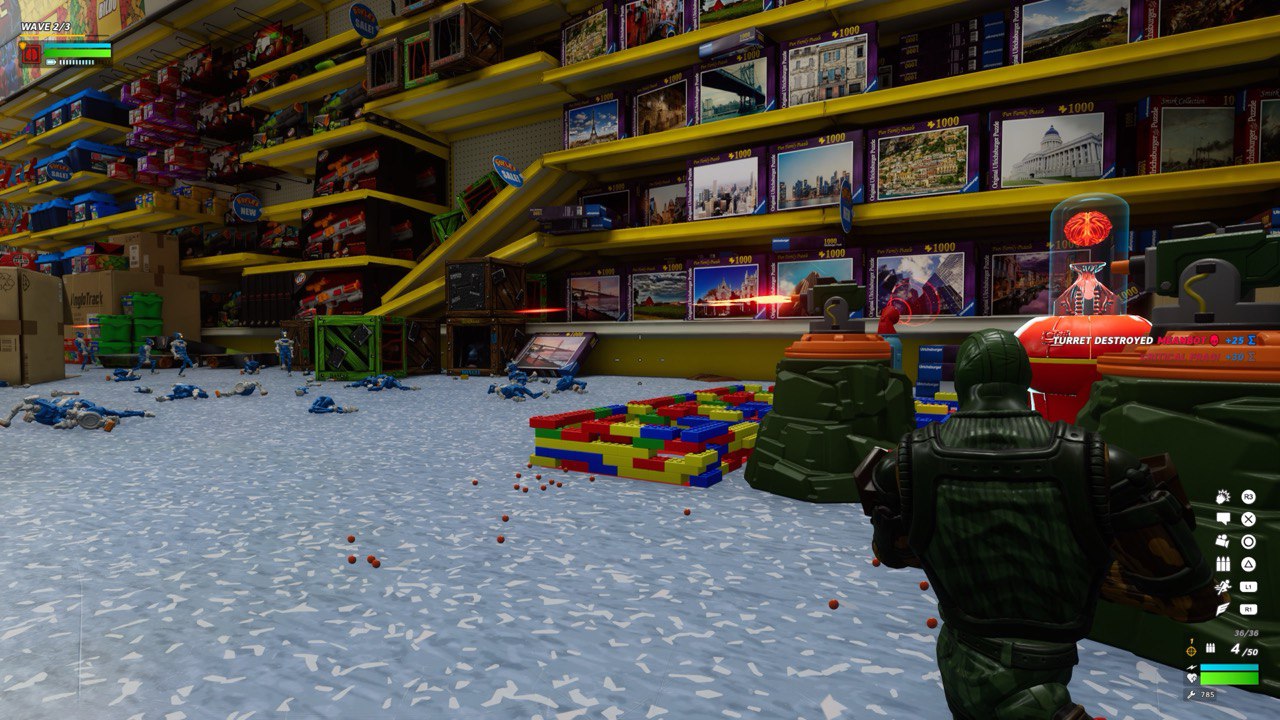 Primarni cilj u kampanji je obrana Hypercorea od uzastopnih napada neprijateljskih igračaka, uz istovremeno izvršavanje različitih zadataka. Igrači istražuju razine kako bi pronašli oružja, resurse i skrivene predmete po mapi za tokenima koje zatim koristite za kupnju obrambenih struktura i nadogradnji — sve s ciljem obrane Hypercorea. Nakon nekoliko minuta pripreme i upoznavanja s okolinom, a možda već i potrag ei obavljanja dodatnih zadataka (kao što je pronalazak baterije i stavljanje iste u jednu od jezgri), kreće val neprijatelja. Vi gradite strojeve i razne aparate za obranu ili napadanje valova neprijatelja, i sami sudjelujete sa pucanjem po njima, odbijate ih i tako sve dok valovi napokon ne stanu. Iako se čini kao nešto što bi moglo brzo dosaditi, kao i svaka tower defense igra koja drži do sebe i ova povremeno unosi nove elemente i oružja i neprijatelje, a posebna poslastica su zapravo ti leveli koji su dizajnirani dosta maštovito, ponekad i komično. Što je za očekivati s obzirom da su lokacije kupatila, kuhinja, sobe itd. Takve stvari uvijek ostavljaju prostora za nadarene dizajnere (što smo vidjeli i u drugim igrama, kao što je naprimjer It Takes Two) a ovi iz Digital Cybercherries su se pokazali da imaju potencijala. To sve, doduše, neće spriječiti neke da im gameplay ipak nakon kraćeg nekog vremena dosadi, no to opet ovisi i o tome s kim i kako igrate.