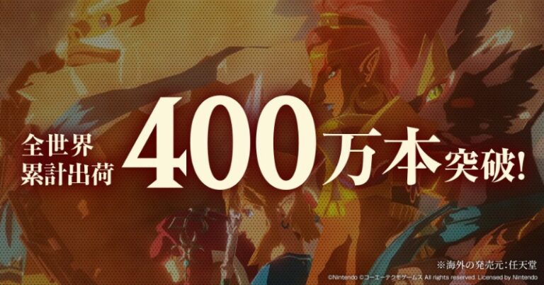 『#ゼルダ無双 厄災の黙示録』の全世界累計出荷本数が400万本を突破しました。プレイしていただいた皆さま、誠にありがとうございます。