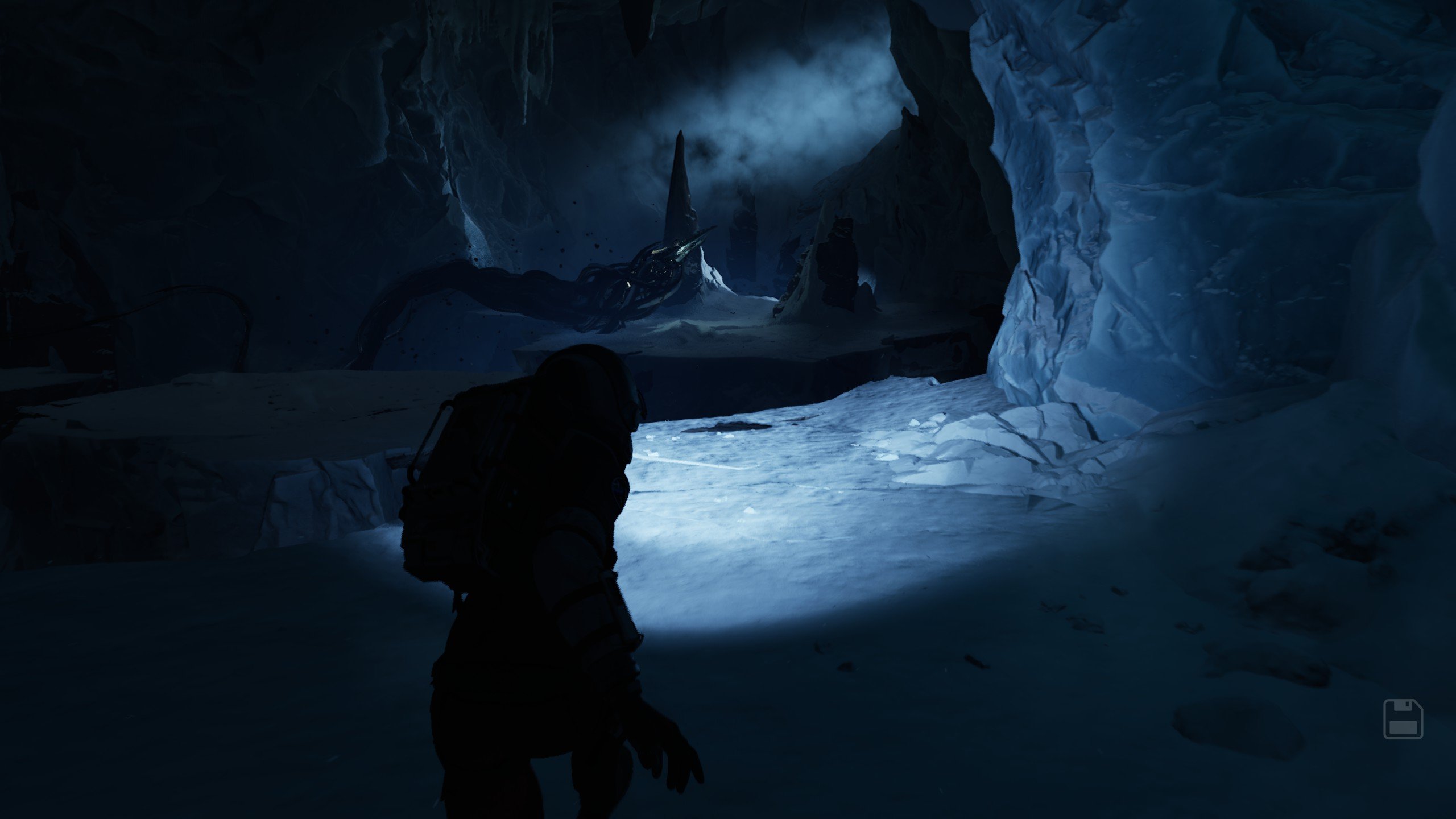 Drugo poglavlje bilo je vrlo drugačije. Ovaj put istraživali smo zaleđenu površinu dok nas je lovilo izvanzemaljsko stvorenje skriveno ispod leda. Čudovište je slijepo, ali reagira na zvuk. To stvara stvarnu napetost u kojoj je svaki korak važan. Krećete li se prebrzo, riskirate da vas čuje. U ovom sam dijelu uživao više nego što sam očekivao. Strah od stvaranja buke čini čak i jednostavno kretanje opasnim.