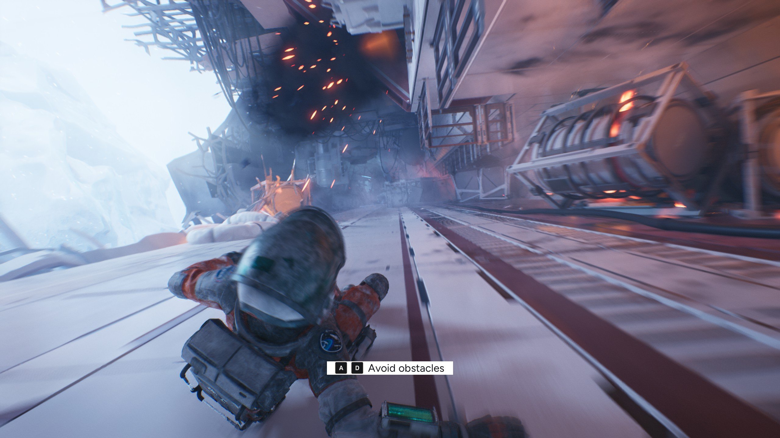 Prvo poglavlje odvija se na oštećenom brodu Hope-01. Brod se raspada, a Ariane pokušava pobjeći i pronaći Thomasa, njezinog kolegu. Igra vas odmah baca u brze platformerske sekvence. Brod se trese, metal puca oko vas, a svaki skok djeluje rizično. Svidjelo mi se što skokovi nisu automatski. Potrebno je pritisnuti lijevu tipku miša u pravom trenutku kako biste sigurno doskočili. Ako ne uspijete, morate brzo pritisnuti određenu tipku kako biste se zadržali na platformi. Mehanike su jednostavne, ali stvaraju stres na dobar način.