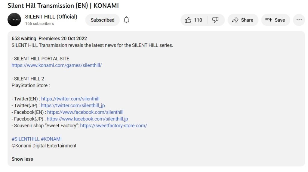 Nakon desetljeća pauze i gotovo tri godine pune leakova i glasina, Konami će konačno progovoriti o povratku Silent Hilla. S početkom u 23h po našem vremenu, očekuje nas posebni Silent Hill Transmission event, tijekom kojeg ćemo nešto više doznati o budućnosti ove franšize, koja bi, sudeći prema leaku koji stiže sa Konamijevog YouTube kanala, trebala biti veoma svijetla.